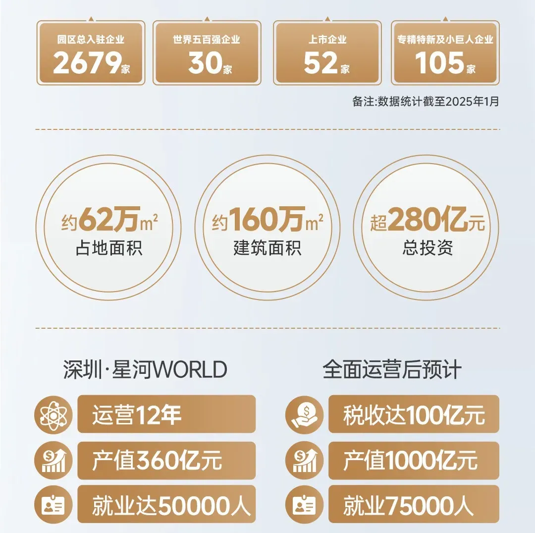 【深圳星河WORLD】占地约62.29万㎡,集产业、商务、居住、教育、购物、休闲、跨贸等多业态配套的产融新城,由星河产业集团自主研发设计并投资运营。以股权投资、创新孵化为核心的科技金融产业,运用产融理念,打造“城园+金融”双闭环总部基地,铸就联盟共享典范,共创“聚人才、集产业、共成长”的产城社区。