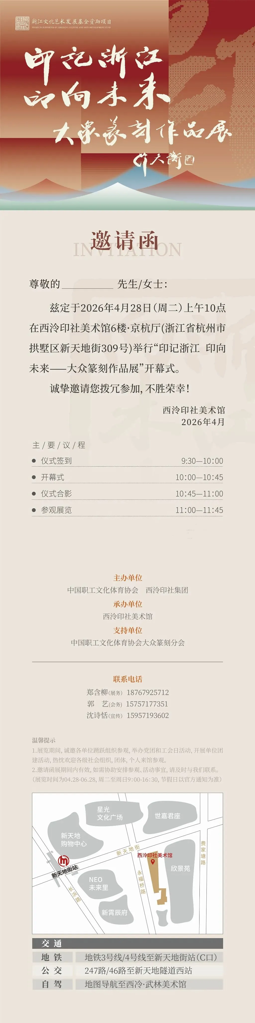 公交线路:公交22路/46路至西泠·武林美术馆门口,从2号入口进入达6楼。