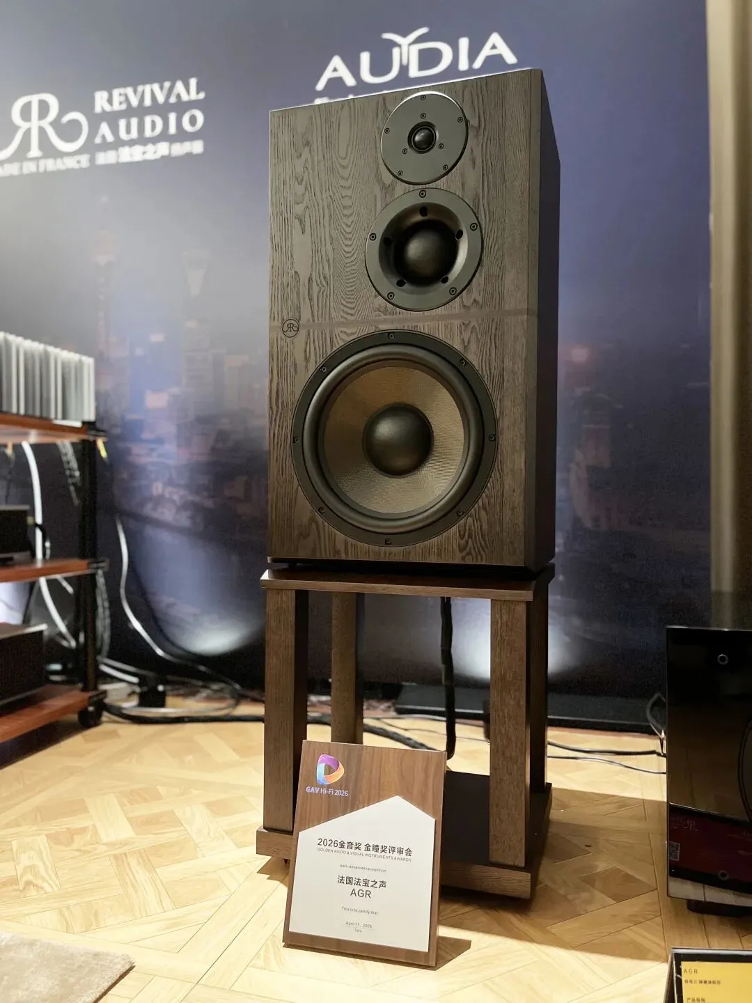 发声核心是法国Revival Audio 法宝之声 AGR 雅塔兰 臻藏旗舰版,全球限量 300 对的法式顶级箱。自家RASC Evo 软半球高音 + 中音,配专利ARID+技术,消除 96% 以上背波干扰;12 寸BSC 火山石三明治低音冲程达 ±12mm,下潜 26Hz、频响 26Hz–24kHz。箱体用多层实木 + 高密度结构,手工分频,声音通透、细腻、动态强,声场与结像都是顶级水准。