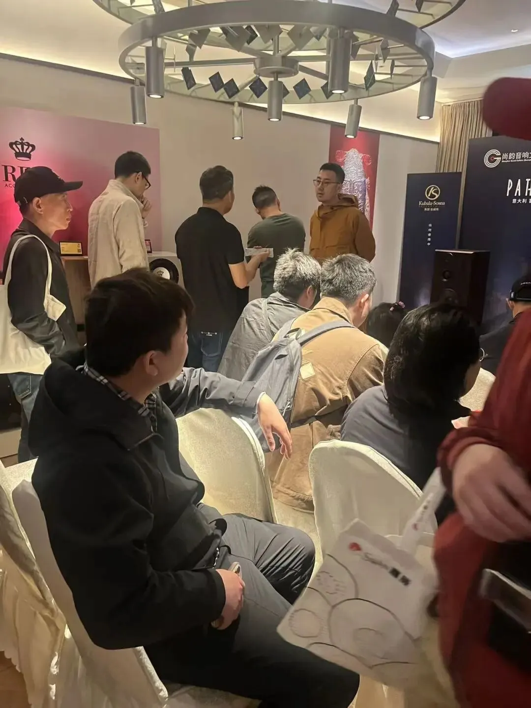 现场咨询的氛围极为热烈,有细致询问接口配置与解码芯片型号的“数据党”,也有更关注搭配方案与摆位技巧的“实战派”。尚韵音响文化的技术人员现场解答了关于音箱单元材质、功放电路设计以及路径的众多问题,专业的素养赢得了在场烧友的一致认可。