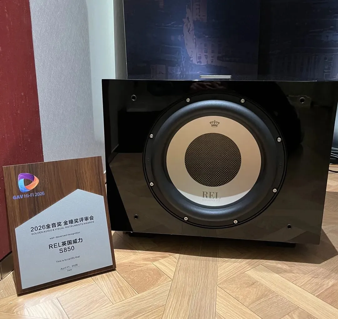超低音是英国 REL S/850 ,12 寸CarbonAlloy 碳合金单元+12 寸被动辐射器,850W 线性 D 类功放,峰值可达 1000W。低频下潜 19Hz,速度快、控制力强、细节足,和主箱无缝衔接,把声场规模、氛围感、动态全部拉满。