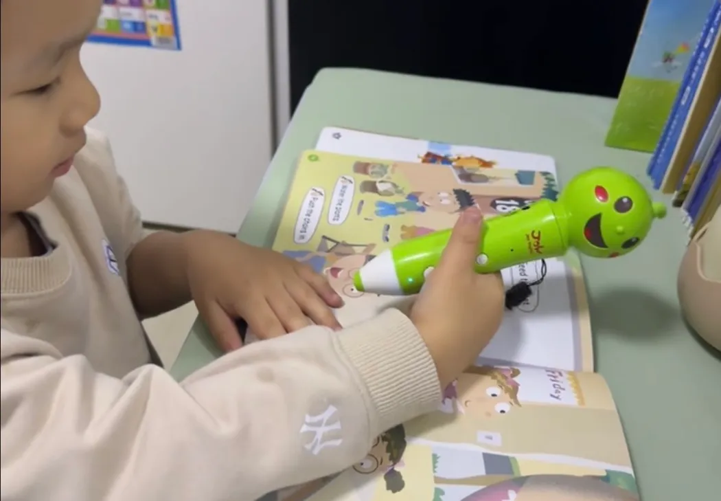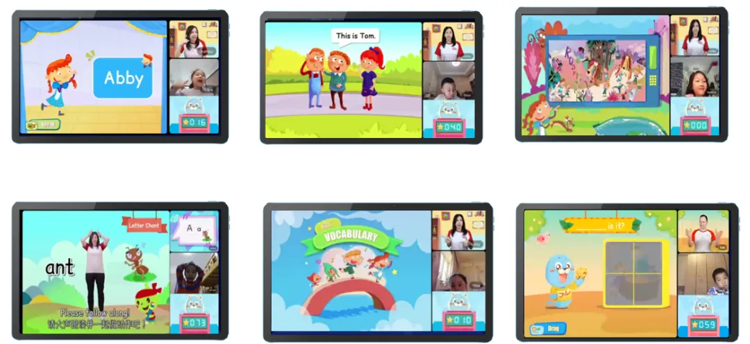 孩子们线下在光影互动空间沉浸式学、高效练,充分调动学习兴趣;线上依托佳音 AI 系统与智能点读笔,实现随时随地巩固复习,孩子在家也能持续沉浸在纯正英语环境中,提高孩子接触语言频率,提升学习效果。