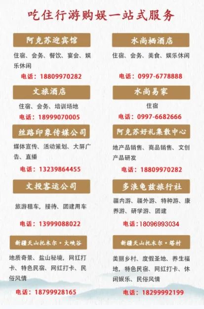 前言:为全面贯彻落实自治区旅游发展大会精神,大力发展阿克苏地区旅游产业,阿克苏地区文旅局、阿克苏地区文旅集团共同推出“带你游阿克苏”新媒体微信旅游平台,整合地区各县市文化旅游资源,将点、线、面全面串联,向疆内外深度介绍大美阿克苏。本期推荐文章:“'展行业风采 绘文旅新篇'阿克苏文旅集团导游讲解大赛圆满结束!”欢迎转发、分享!