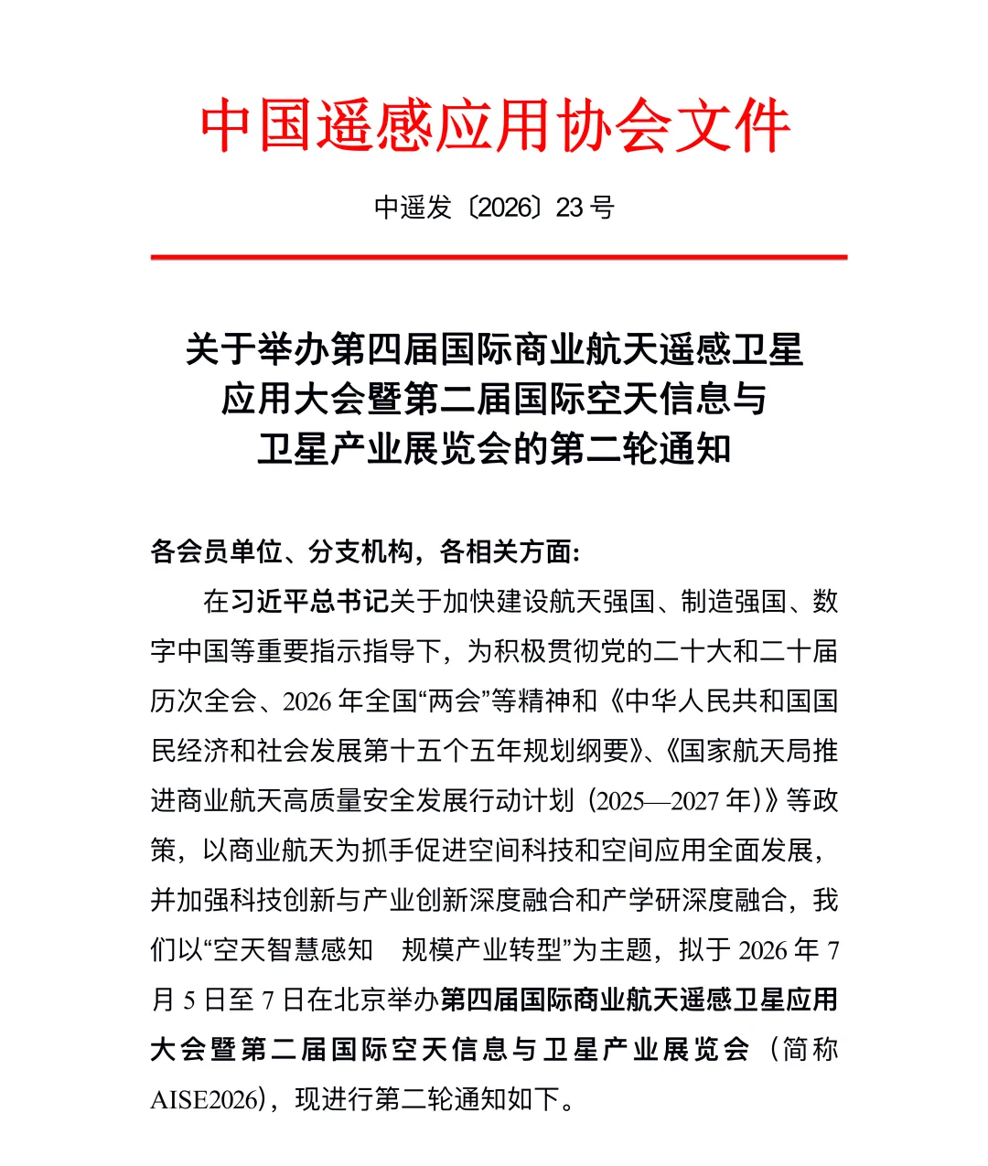 关于举办第四届国际商业航天遥感卫星应用大会暨第二届国际空天信息与卫星览会的第二轮通知