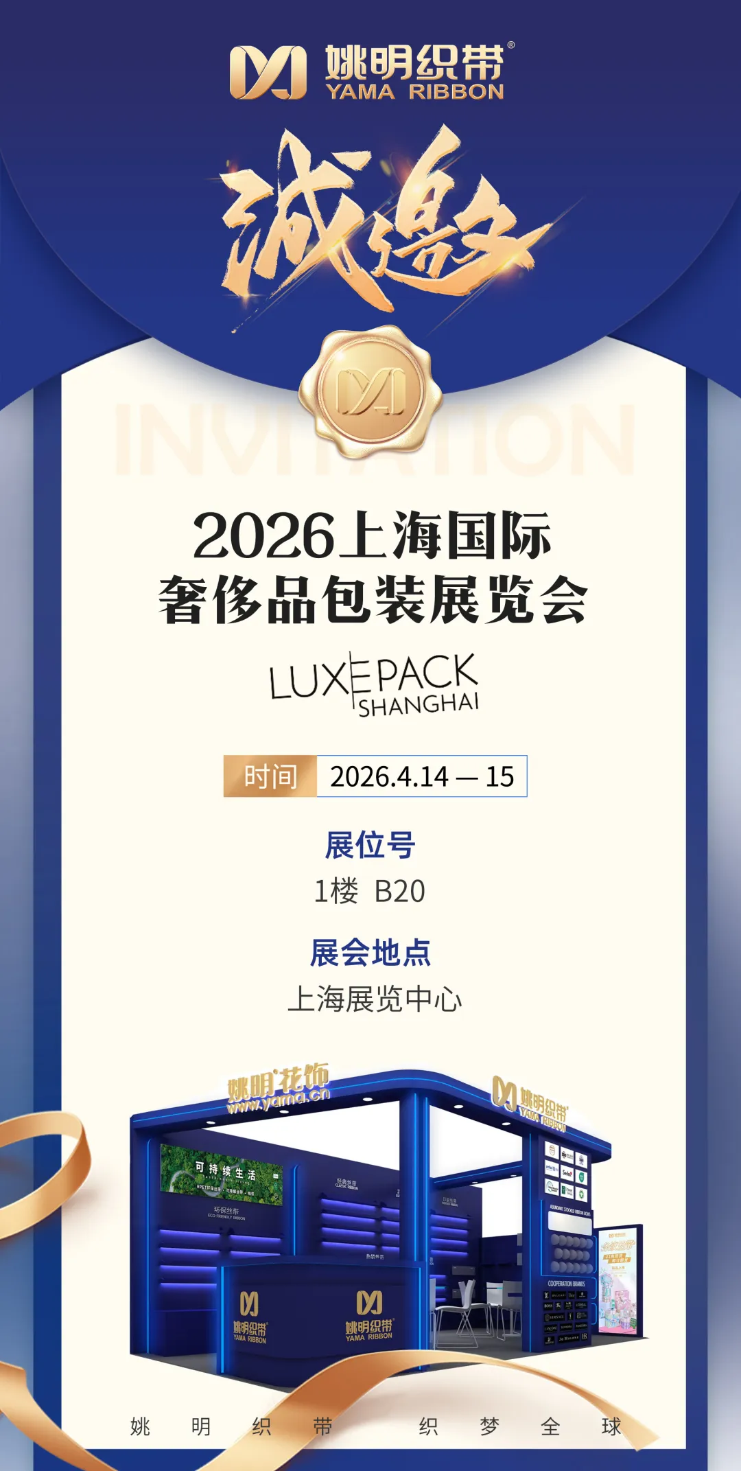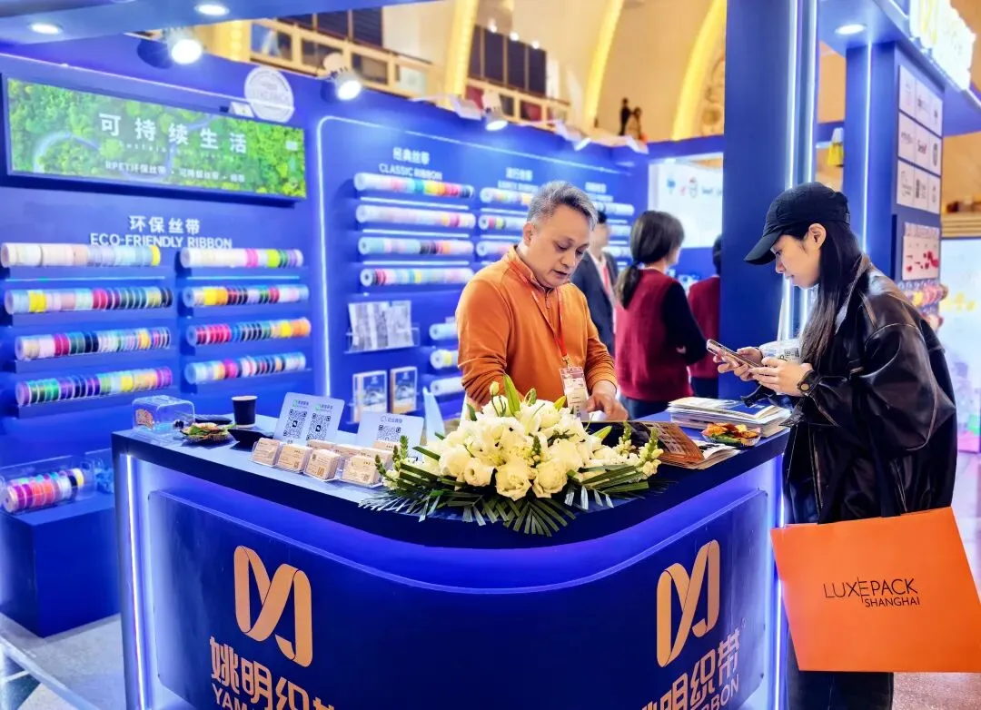 姚明织带深耕织带领域多年,本次参展,我们严格围绕奢侈品包装的高级感、专属感、环保性、仪式感四大核心需求,带来数百款经典丝带、热销丝带、新颖丝带、流行丝带、环保丝带、印刷丝带、包装花结、压扣以及更多的织带在不同场景下的应用,为高端礼盒、香水瓶口、珠宝包装、品牌礼赠等全场景提供一站式辅料解决方案。