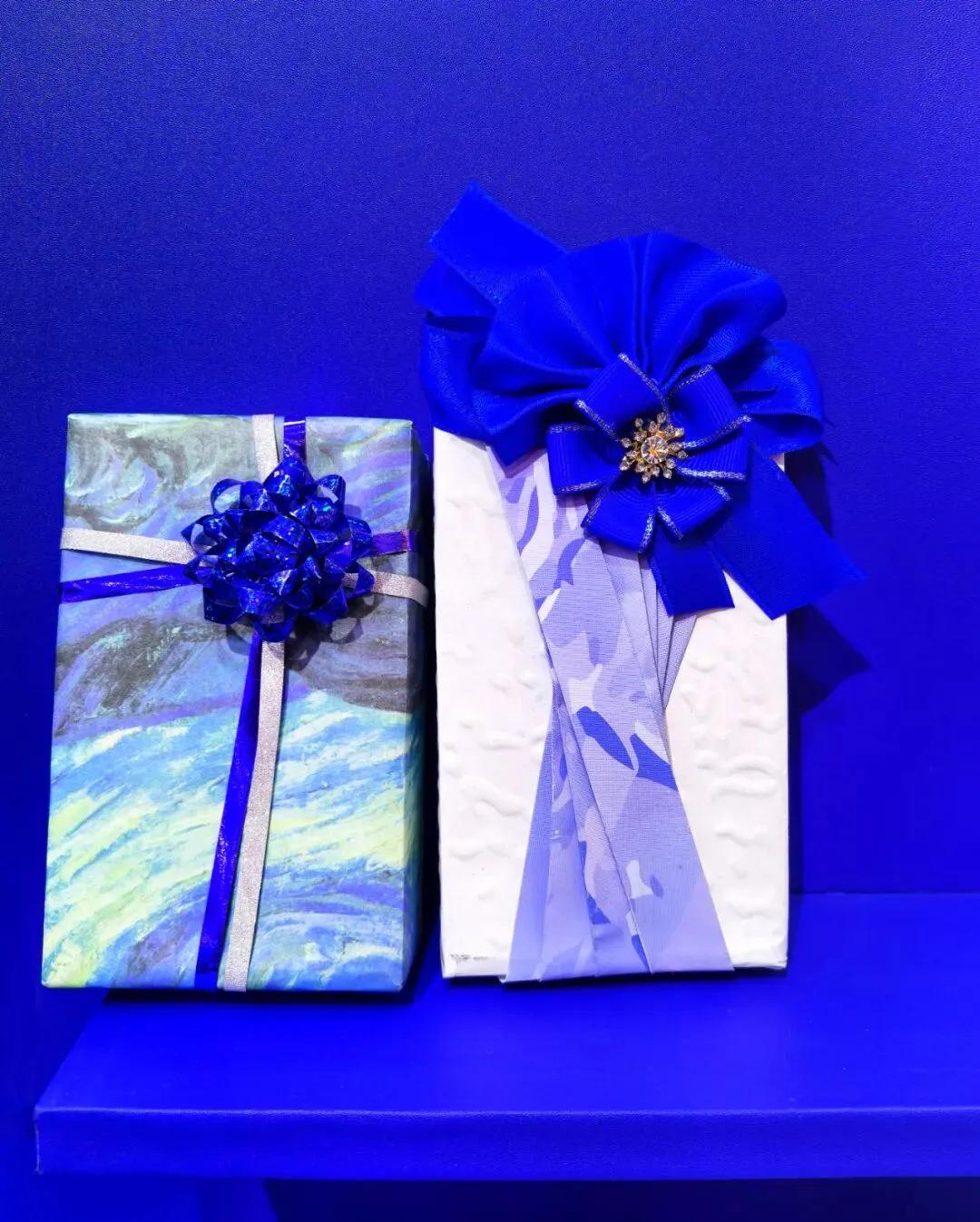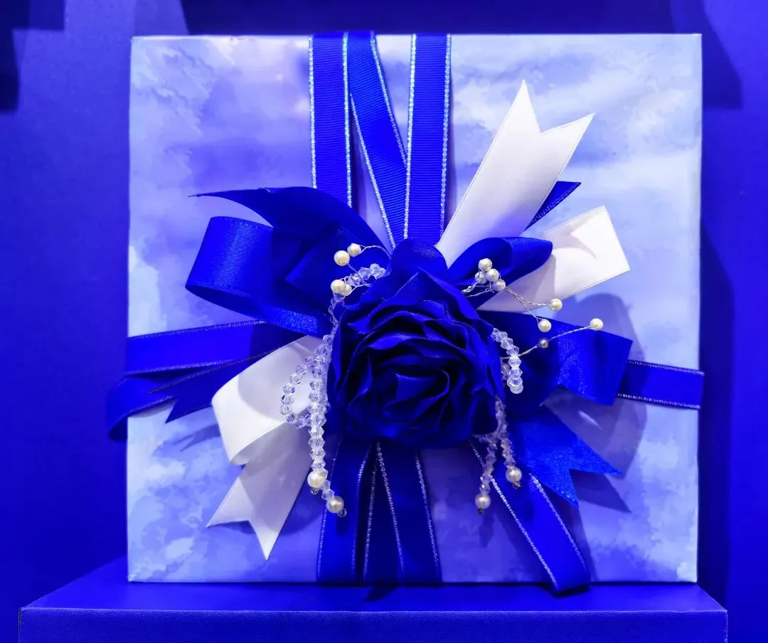 从简约利落的十字缠绕,到层次丰富的立体花结;从经典的优雅垂坠,到创意的艺术造型,每一款礼盒都被织带赋予了独特的灵魂:有的以纯净蓝白撞色,勾勒出极简高级的线条;有的以立体织带花饰为核心,绽放出如艺术品般的精致细节;有的融入波点、印花等潮流元素,在经典与时尚间找到精妙平衡;有的则以梵高星空般的艺术纹理为灵感,让织带与礼盒设计浑然一体,成为品牌美学的延伸。