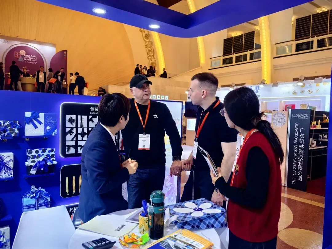 在客户交流环节,姚明织带的团队以专业、沉稳、细致的态度,与每一位访客真诚沟通:认真倾听客户的需求与建议,细致讲解材质特性、工艺细节与定制流程,提供更贴合品牌调性的实用建议。