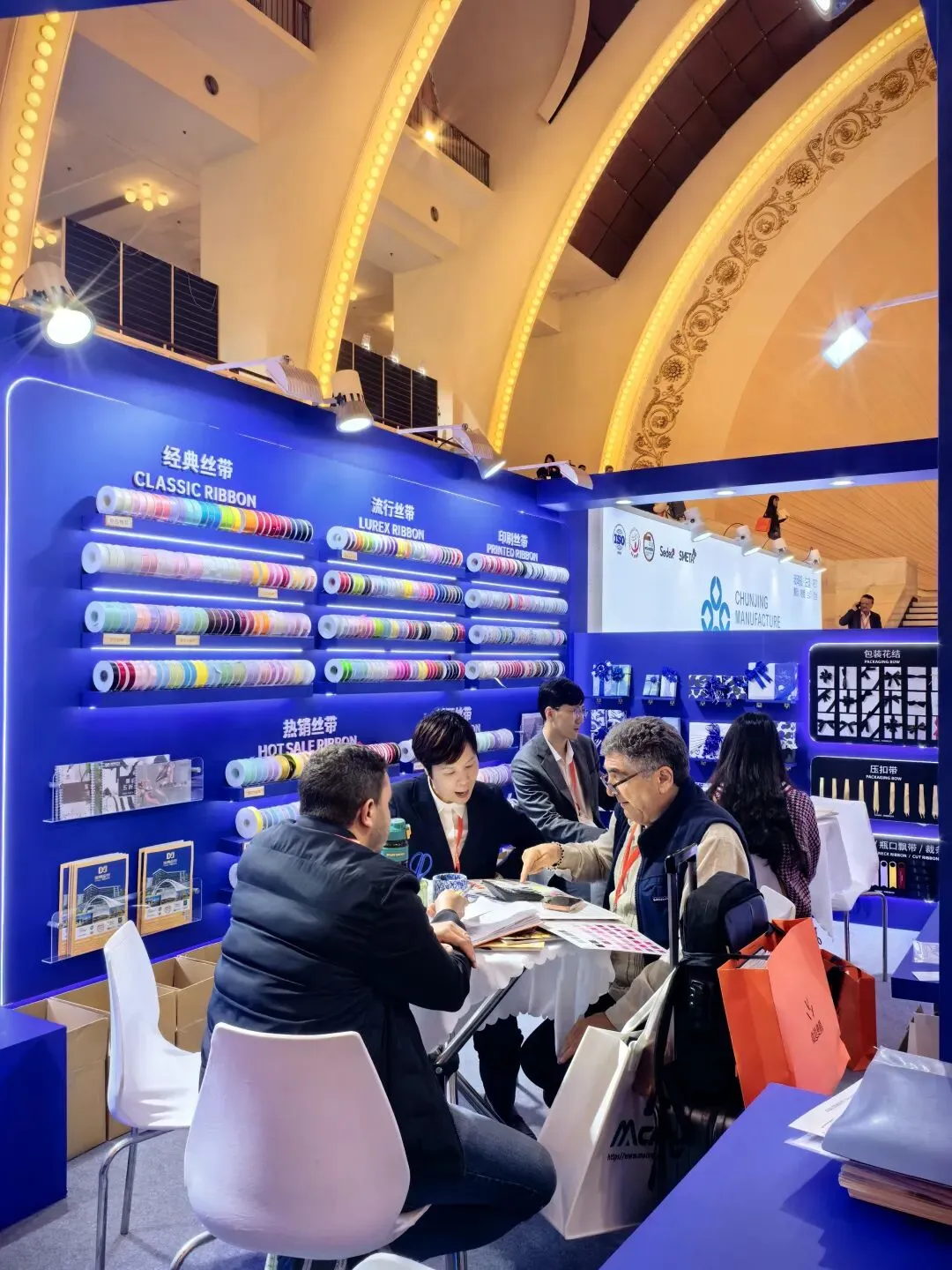 我们始终以客户需求为核心,在交流中传递品质、信任与长期合作的诚意,不做过度推销,只做专业适配。许多客商在触摸织带质感、查看工艺细节、了解定制能力后,对姚明织带的高端适配性给予高度认可,现场达成多项深度合作意向。