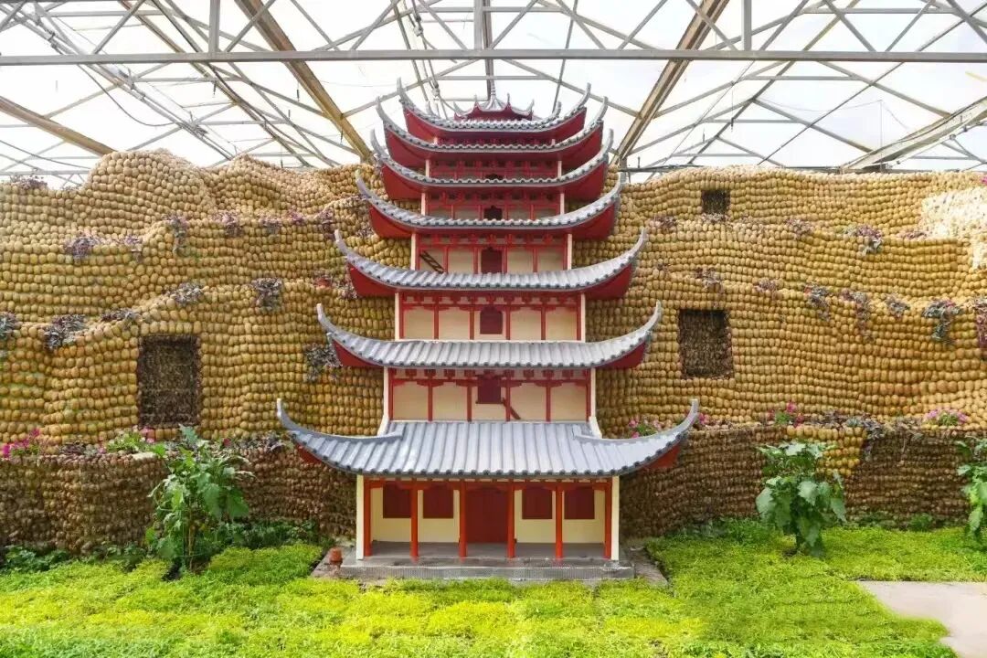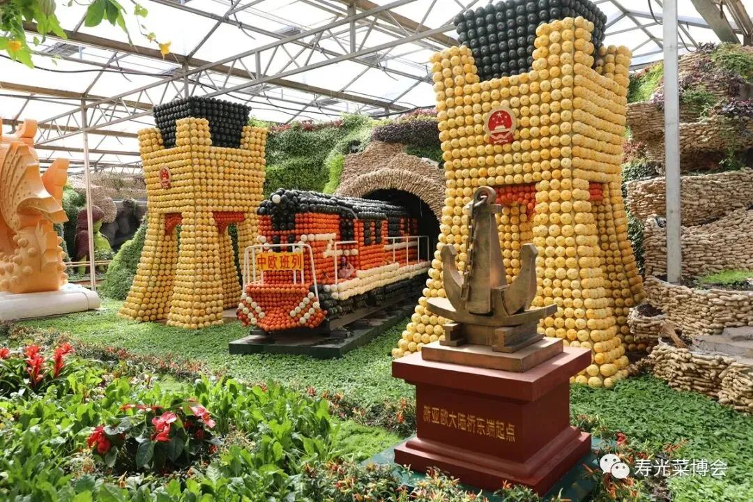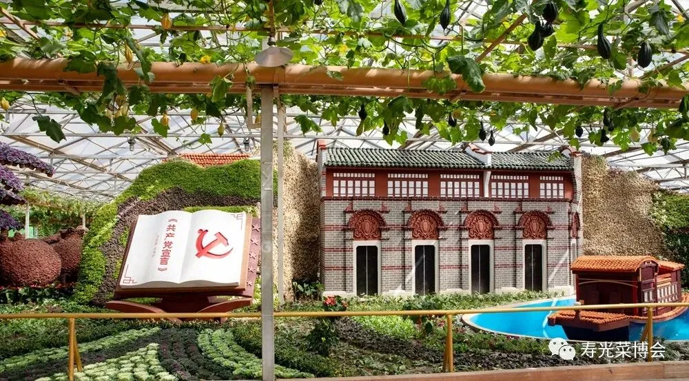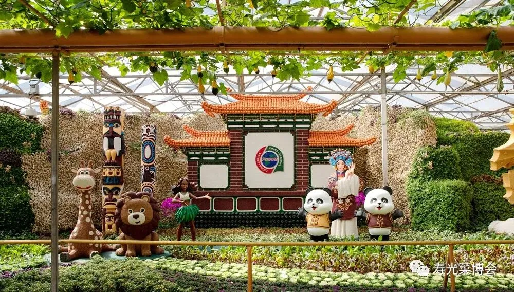 ,以蔬菜为笔,文化为魂,运用寿光蔬菜元素描绘各地特色文化景观。采用了蔬菜挂果、盆栽、扦插、粘贴、仿真、雕刻等艺术手法,通过实景模型、景观制作和场景还原等方式,空中搭配蔬菜精美廊架,融景观与农艺、传统与现代为一体,成为菜博会展现地域文化魅力、彰显现代农业发展活力的核心展示窗口。
