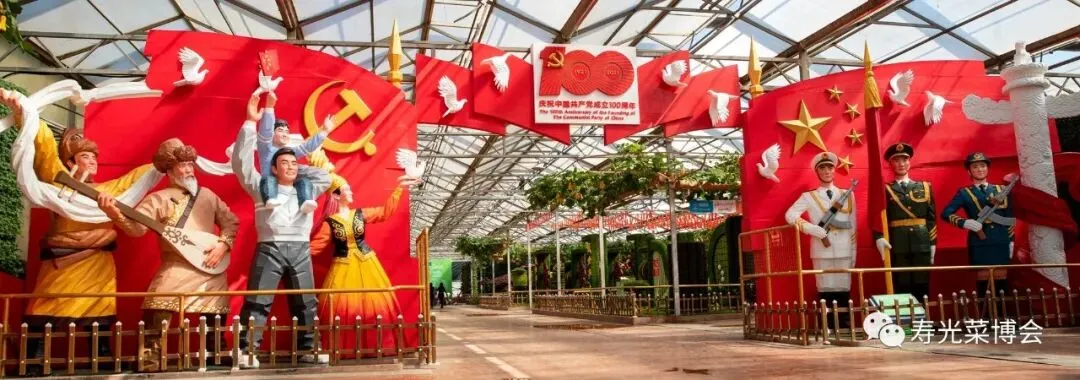 八号馆为蔬菜文化景观馆,以“中国共产党成立100周年”为主线,精心打造“百年伟业”、“盛世欢腾”、“中华圆梦”、“清风廉韵”等20多个大型蔬菜景观,展现中国共产党的光辉历程和辉煌成就。
