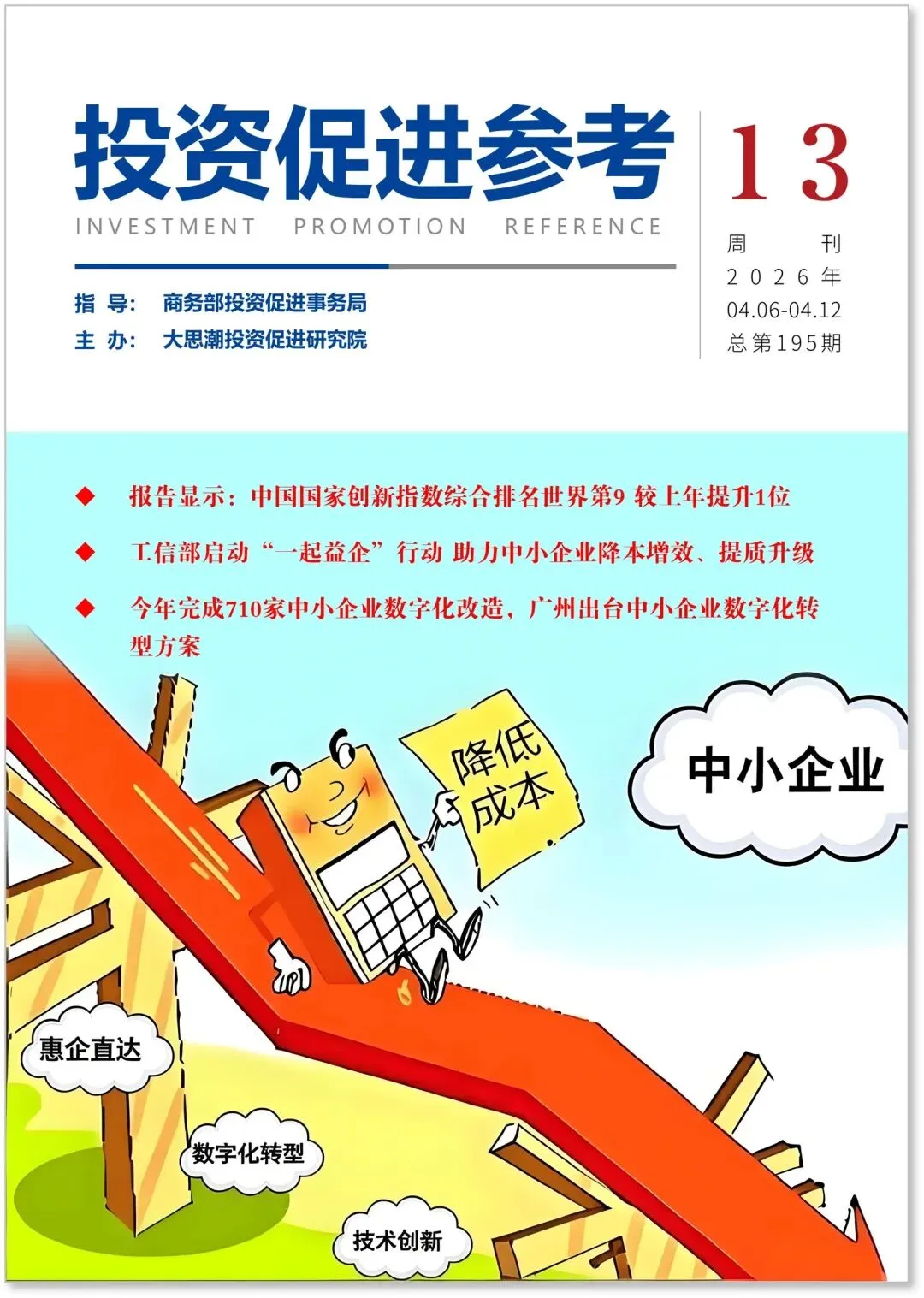 《投资促进参考》是商务部投资促进事务局指导,由大思潮投资促进研究院主办的全国投资促进综合性周刊。该刊设置了8个专栏:“智库观察、投促前沿、投促快讯、基金招商、企业投融资、产业投促、园区投促、投资环境”和1个招商引资政策汇编。面向全国地方政府和投资促进机构、园区(开发区)以及国内外企业(投资人)订阅发行。若有需要订阅,可通过底部订阅方式与编辑部联系。