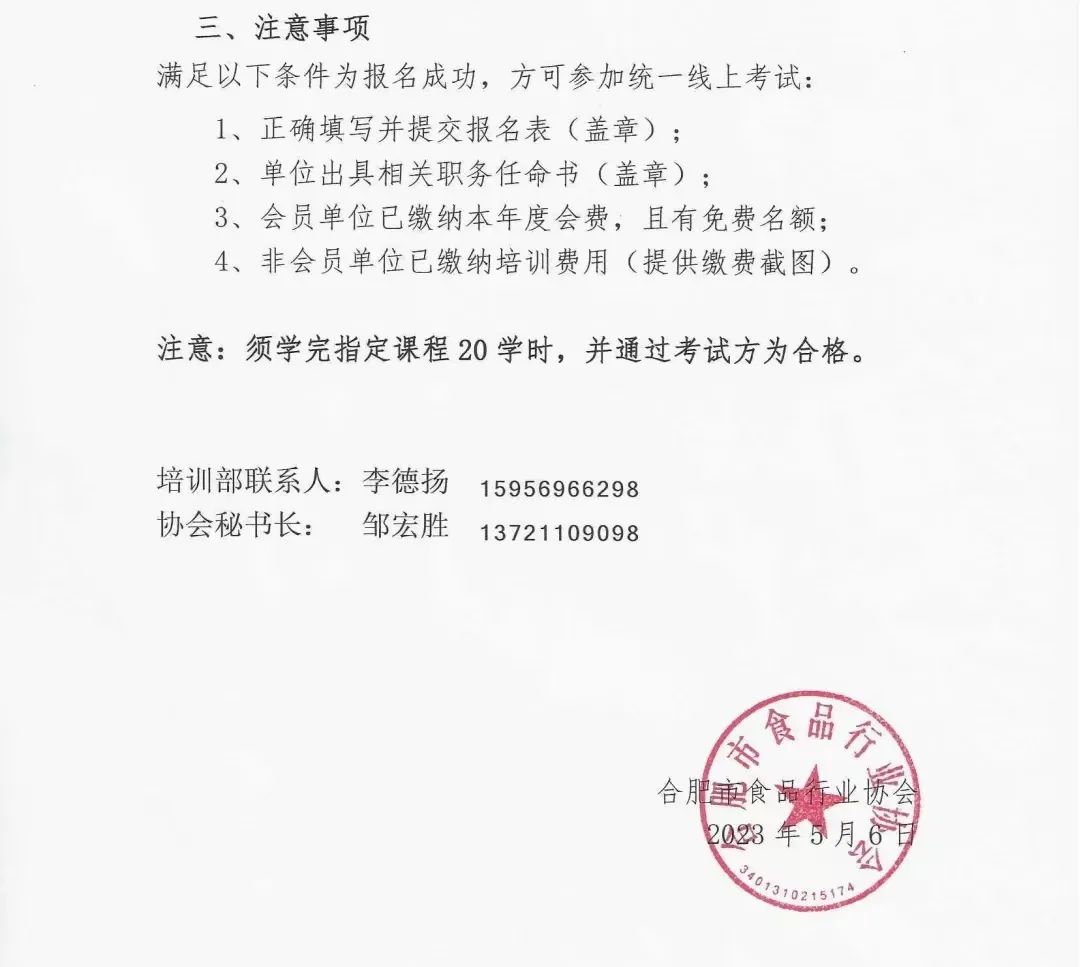 重要通知!第二批次食品安全员、食品安全总监考试合格人员名单公布