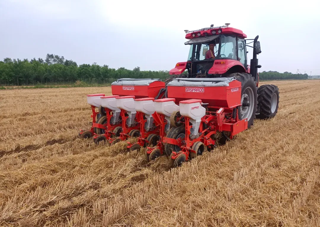 SP系列气吸式精量播种机重量轻,适用于低马力段拖拉机,用来在已耕地进行精量播种作业。单体落种点低,株距精准度高。操作容易,播种作业稳定可靠。播种/施肥开沟器根据不同地况有多种选配,标配犁刀式施肥开沟器