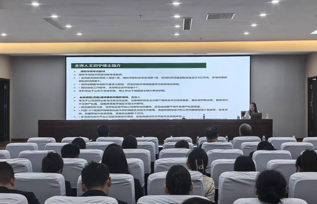 4月11日,潍坊市社科联带队赴青州某平台公司举办理论宣讲活动。德恒济南律师事务所非权益合伙人王泊宁律师应邀出席,并以《国有企业投融资策略及风险防控》为题作专题培训。