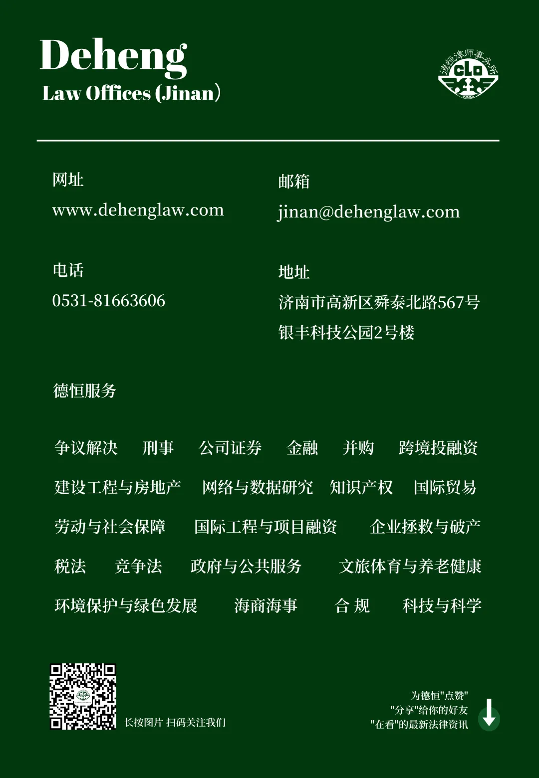 德恒济南亦长期深耕国有企业合规管理、投融资与并购重组等核心领域,致力于以法律专业赋能国企高质量发展。未来,我们将持续发挥专业集成优势,助力国有企业在新时代变革中稳健前行、行稳致远。