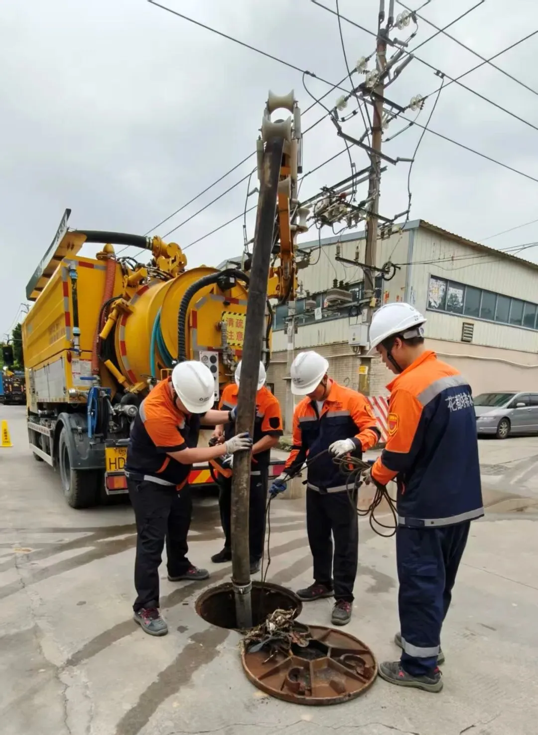 公司始终坚持“预防为主、防治结合”的原则,对重点区域实施深度清疏作业,具体以广州北站、连接市中心与琶洲会展中心的主要干道(如迎宾大道、凤凰南路、镜湖大道等)及其周边区域为核心重点,安排自营清疏队伍运用高压冲洗车、联合疏通车、抓斗车等专业设备,对排水管网、雨水口、检查井开展拉网式清疏养护工作。尤其针对易淤积路段、餐饮集中区下游管道进行重点清理,全面彻底清除管内淤泥、油污、垃圾等各类堵塞物。