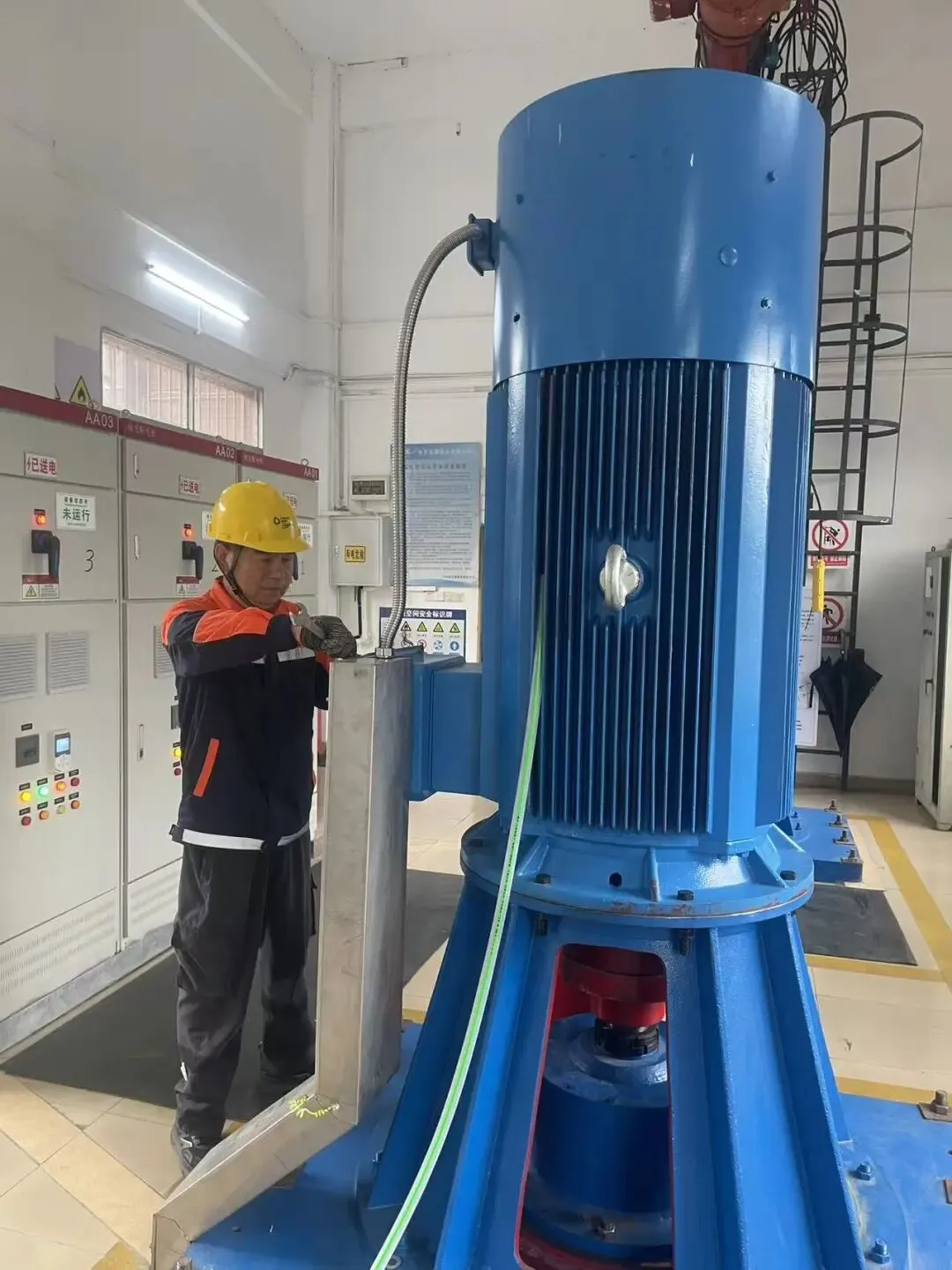 技术人员正在对排涝泵进行维护保养作业