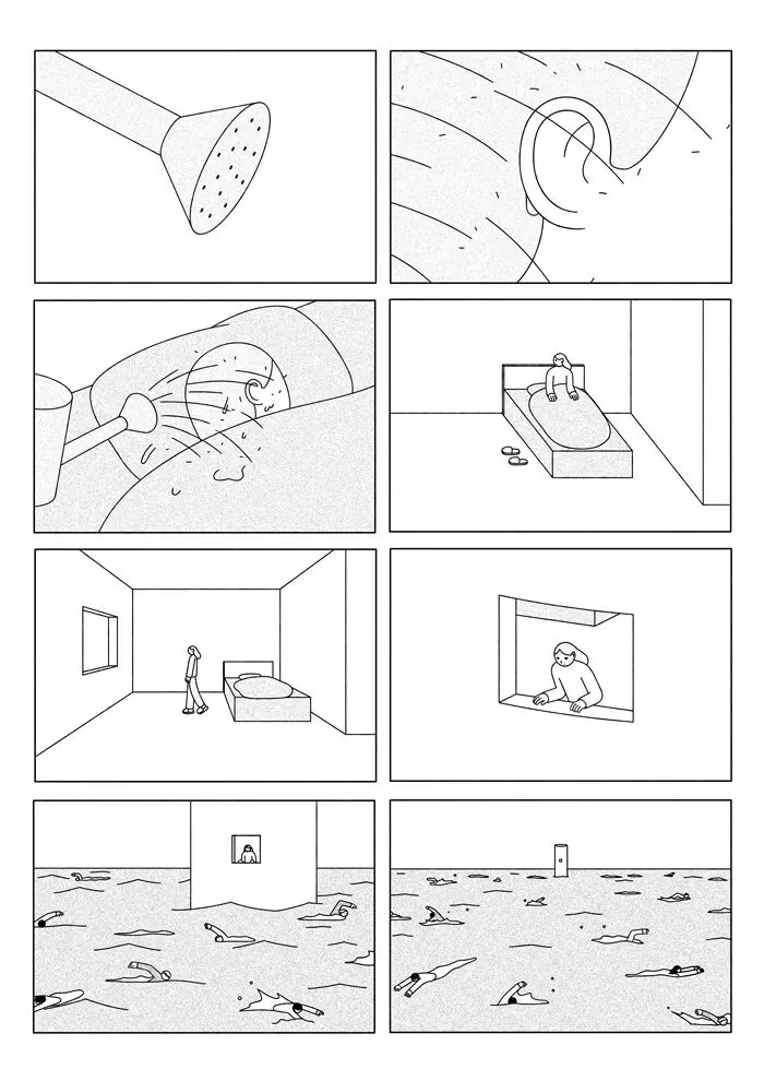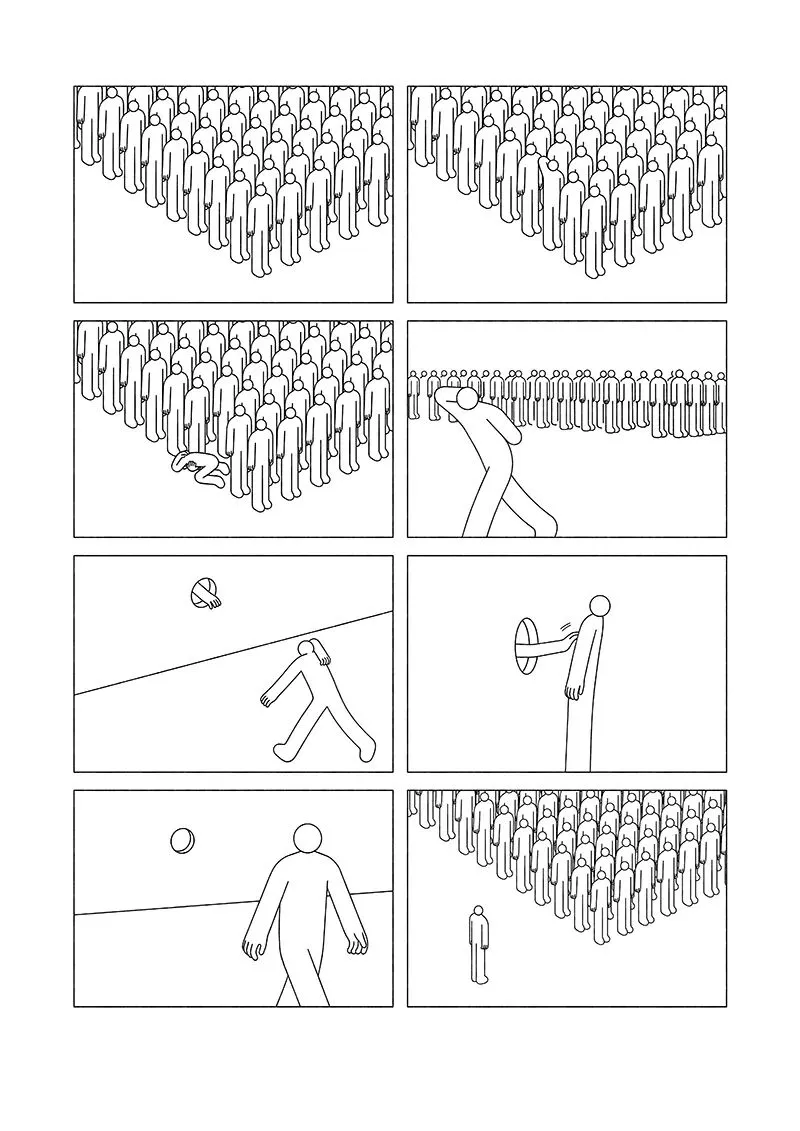 我是白,是一位生活在上海的漫画家与插画师。他的作品多为单色,风格极简而克制,在单帧与多帧之间自由切换,以轻盈而精准的方式构建叙事。作品常游走于现实与想象之间,以诗意的方式触及日常经验中的荒诞与存在。