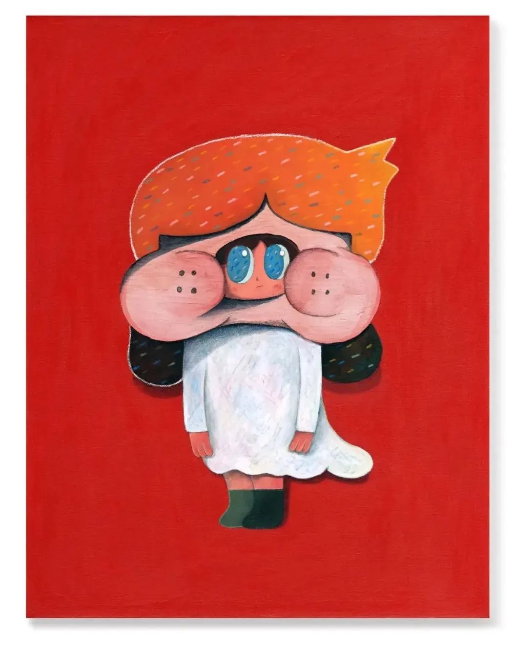 艺术家以极具冲击力的视觉语言,将梦境的隐喻、生命的感知、精神的独白,凝练成高度辨识性的符号。在这组作品中,他以拙趣与伤痕并存的形象构筑叙事,将个体在信息洪流中的疏离感,揉进每一寸肌理。层叠剥落的纸张、磨损的笔触,都意在留住时间的温度——像童年墙上的刻痕,沉默、质朴,却真实地存在着,等待着被看见。