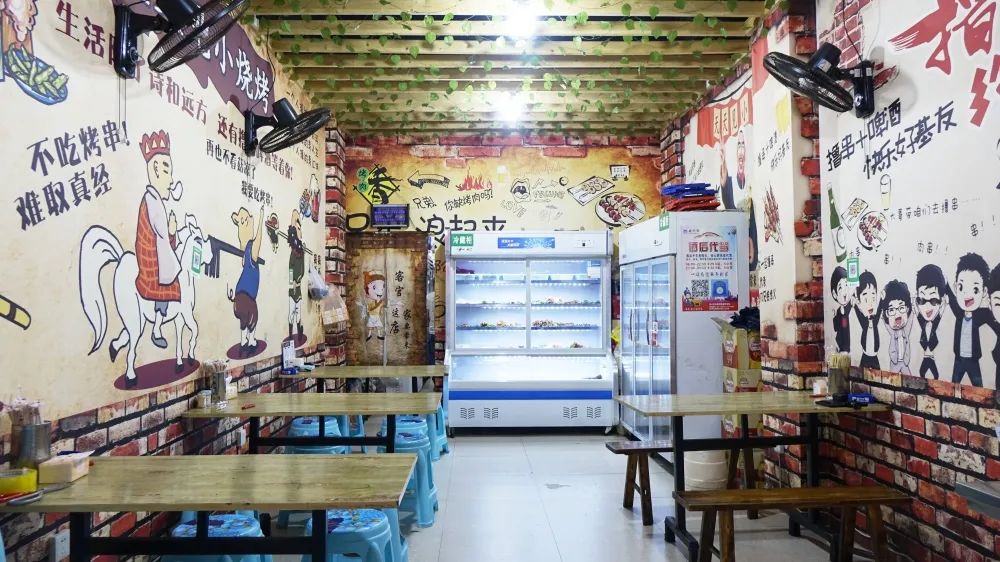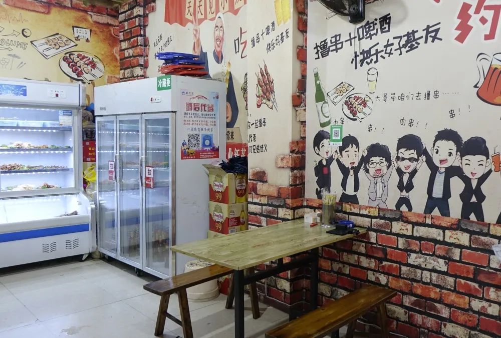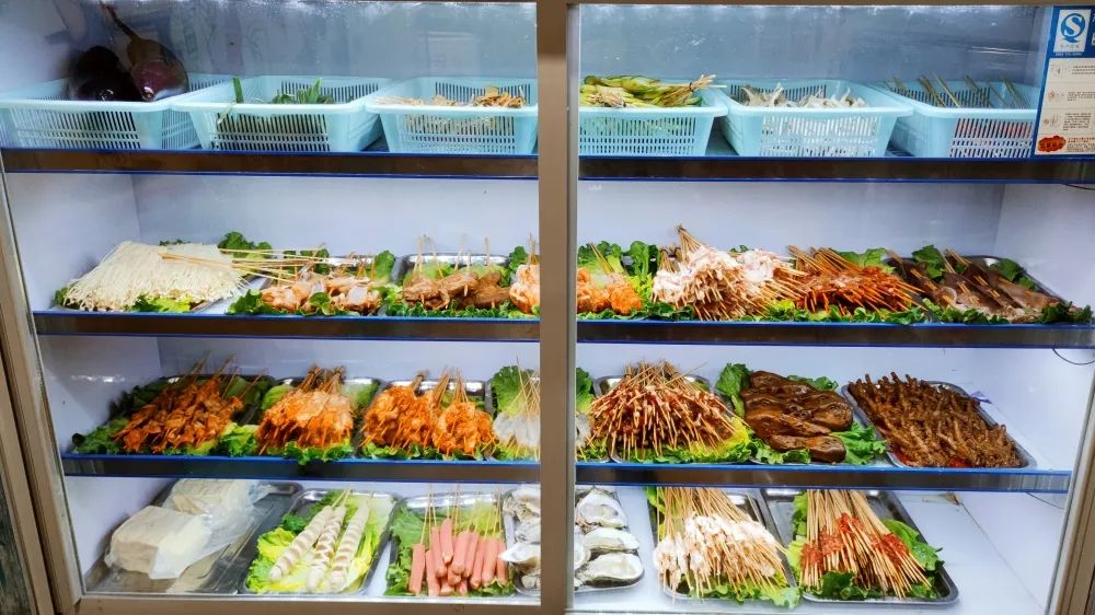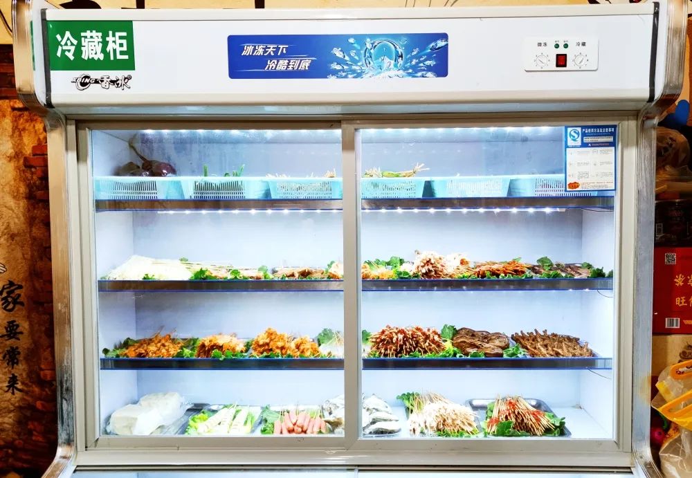 忘江湖昭通小肉串店内有个很大的冷藏柜