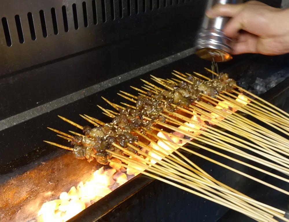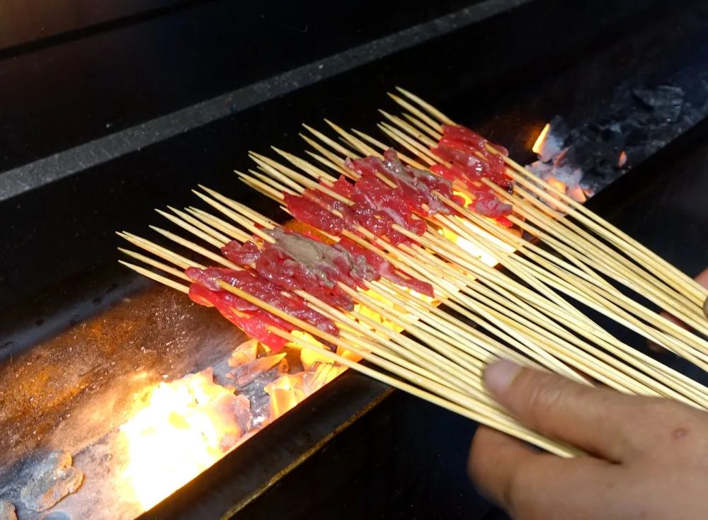 羊肉串刷了秘制香料,然后在炭火上烤,完全吃不到一点膻味,有的只是羊肉的本香味,和淡淡的碳烤香味。