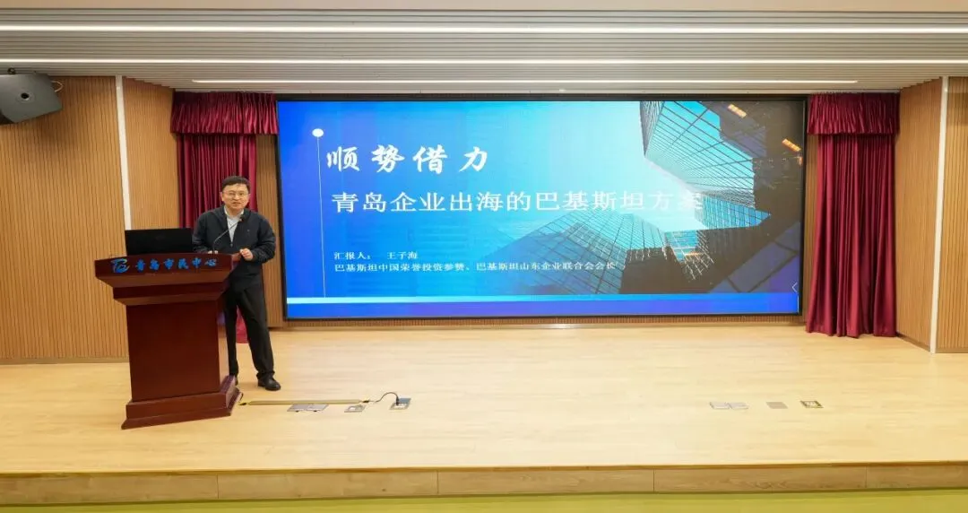 4月13日,由市委统战部、市贸促会主办的“青企出海”葡萄牙、巴基斯坦专场推介会在青岛市民中心圆满举行。我平台负责人、巴基斯坦中国荣誉投资参赞、巴基斯坦山东企业联合会会长、巴基斯坦中资企业服务中心董事长王子海受邀作主题推介,以20年深耕经验,为青岛企业带来出海深度解读。