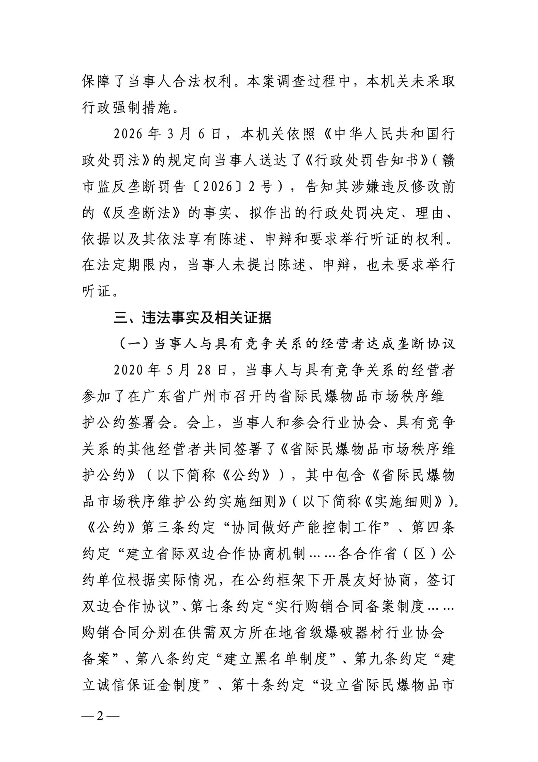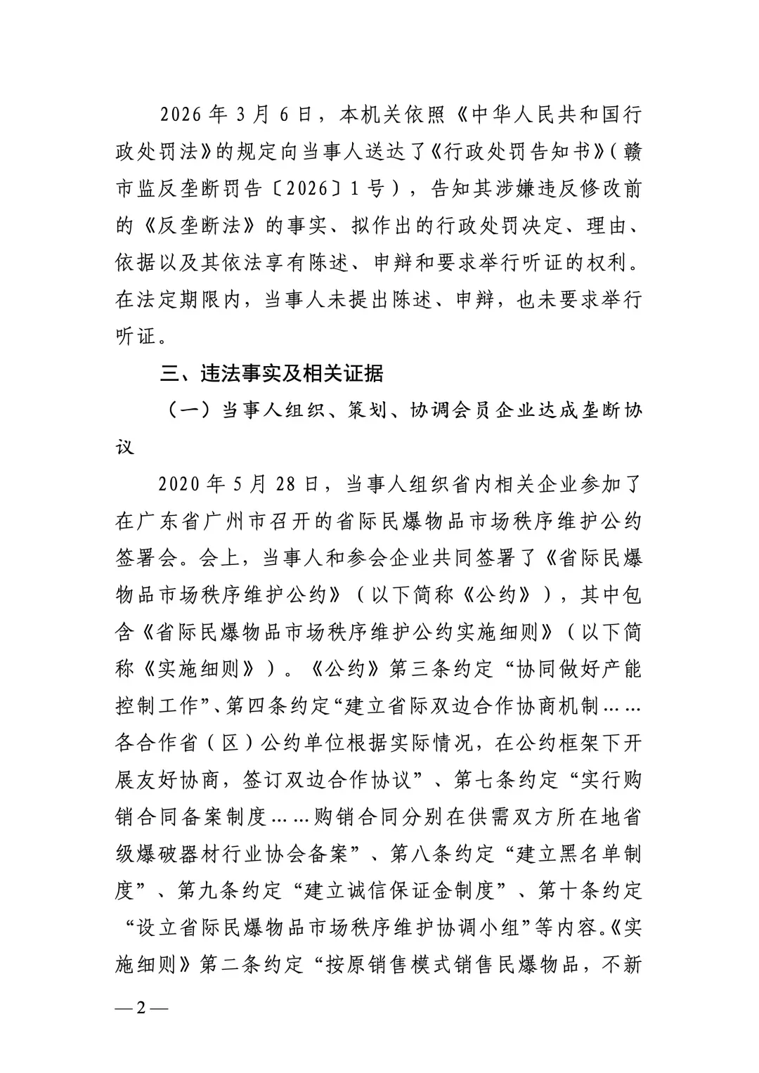 江西省爆破器材行业协会组织民爆企业达成垄断协议遭反垄断处罚