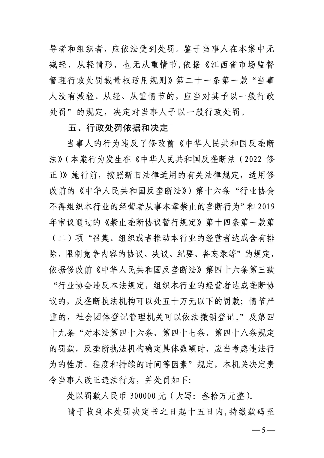 企业达成垄断协议案行政处罚决定书