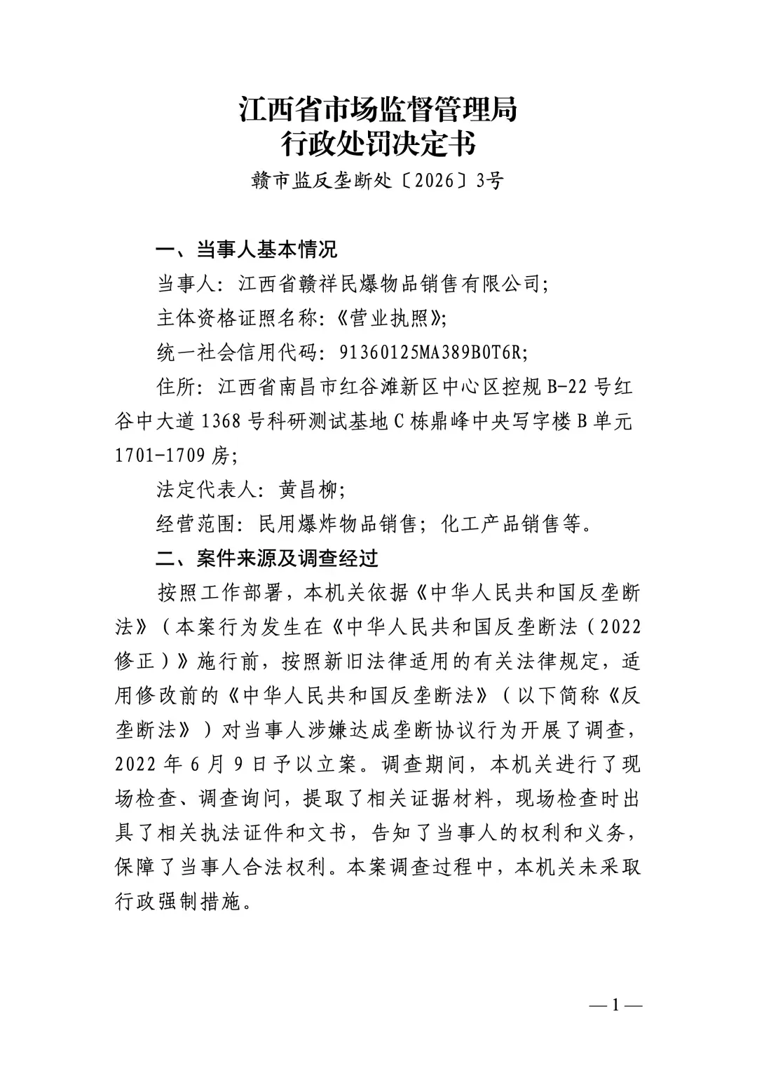 江西省市场监督管理局于2022年6月对江西省爆破器材行业协会涉嫌组织民爆企业达成垄断协议行为立案调查。2026年3月,江西省市场监督管理局依法对相关当事人作出行政处罚决定。现予公告。