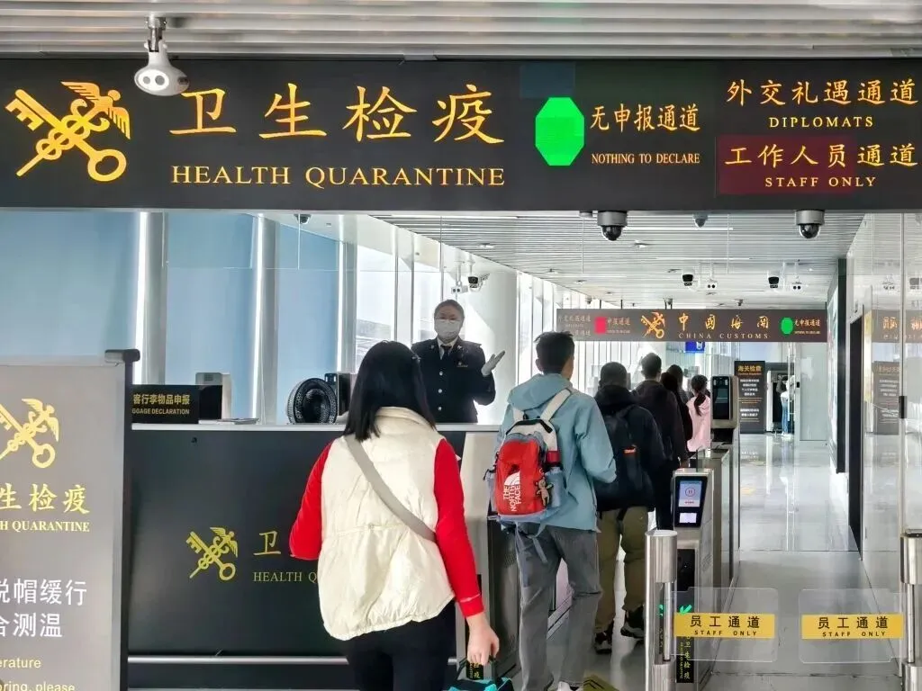 进出境人员免于填报《中华人民共和国出/入境健康申明卡》,但有发热、咳嗽、呼吸困难、呕吐、腹泻、皮疹、不明原因皮下出血等传染病症状,或已经诊断患有传染性疾病的出入境人员须主动向海关进行健康申报,并配合海关做好体温检测、流行病学调查、医学检查等卫生检疫工作。