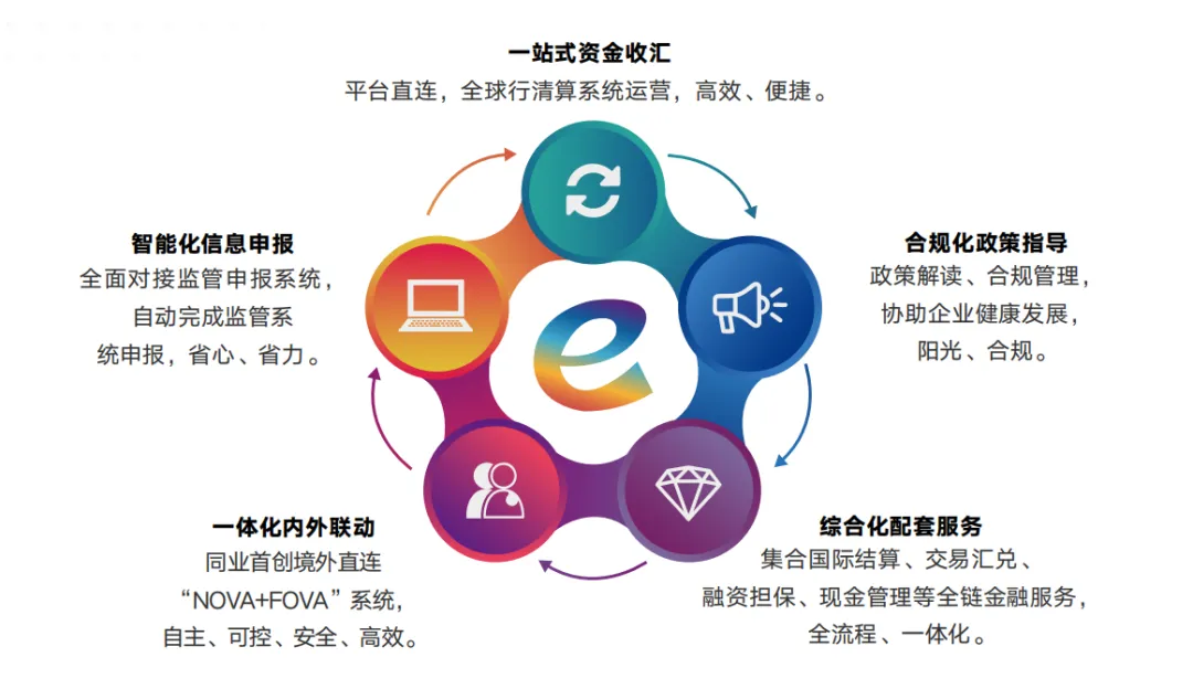 工银e贸可为跨境电商企业提供集账户管理、支付结算、汇率避险、融资授信、现金管理和咨询顾问等功能于一体的综合金融服务。