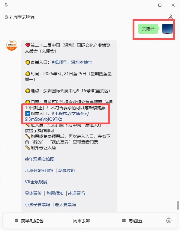 如果大家想领取文博会门票,可以扫描下方二维码,跳转【深圳周末去哪玩】公众号或在【本地宝APP】,回复【文博会】关键词,即可获取文博会免费领票入口