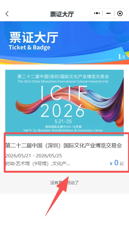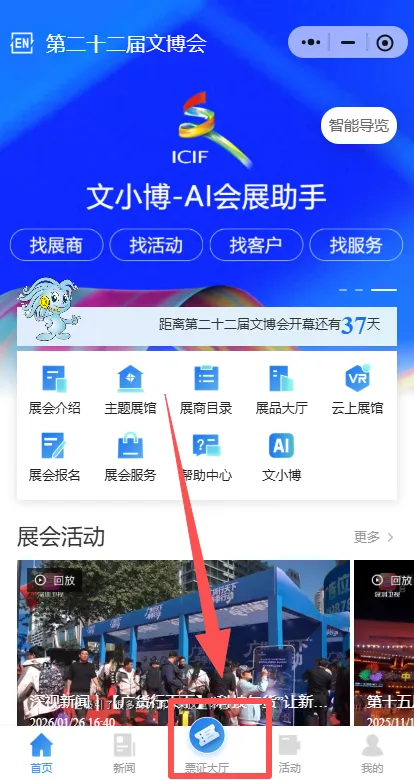 第二步:点击票证大厅,然后点击第二十二届文博会;