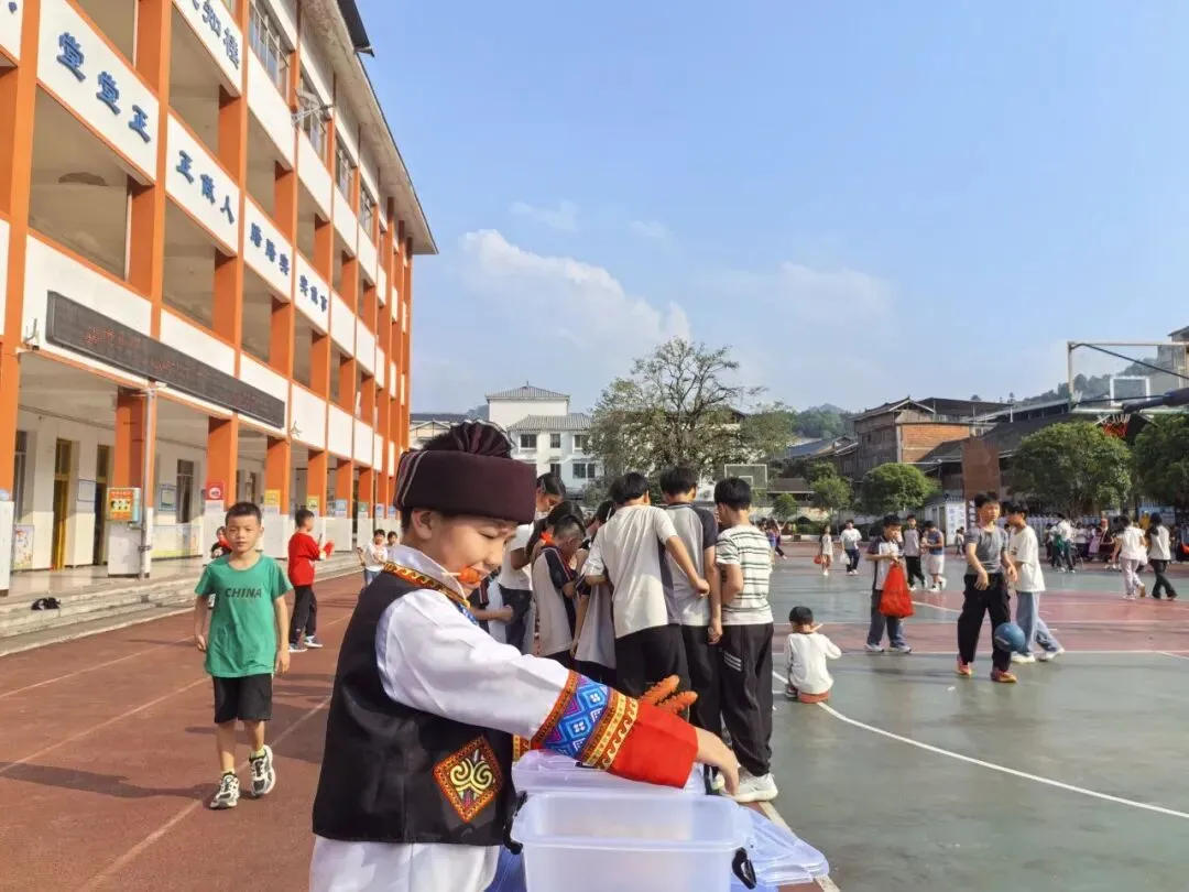 壮韵飞扬庆佳节,童心聚力传文化。为喜迎广西“三月三”,传承民族文化精髓,增强学生民族自信,铸牢中华民族共同体意识,让孩子们在沉浸式实践中体验民族风情、感受民俗魅力,4月13日下午第七节课,龙胜县瓢里小学在校园内隆重举办庆广西“三月三”民族交易会。部分师生身着民族盛装,共赴这场充满烟火气与民族味的文化盛宴。