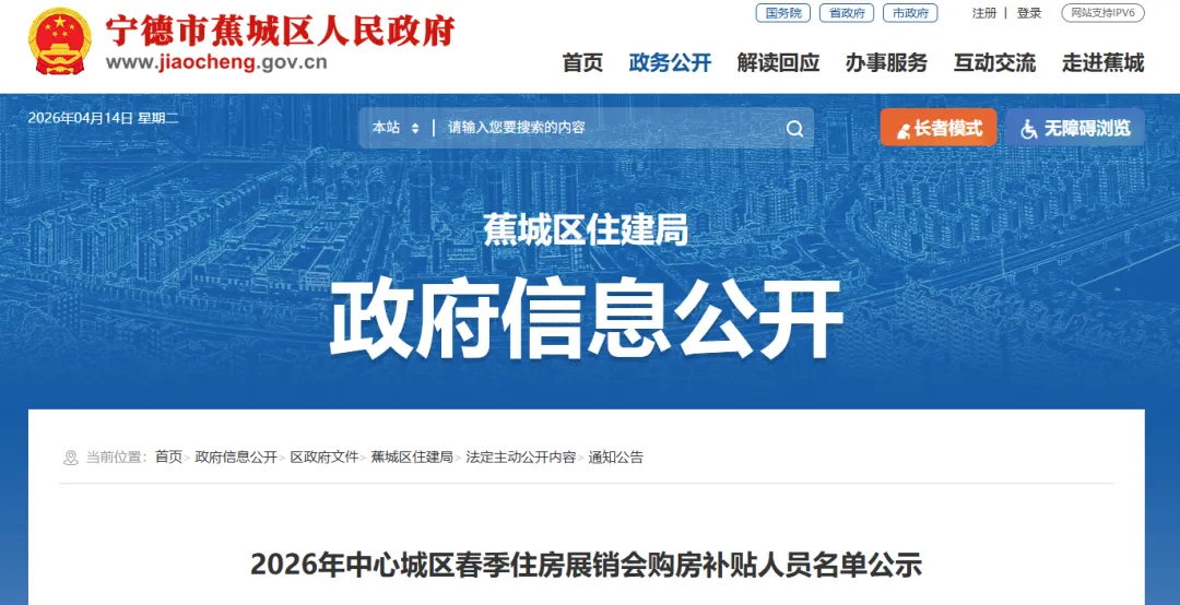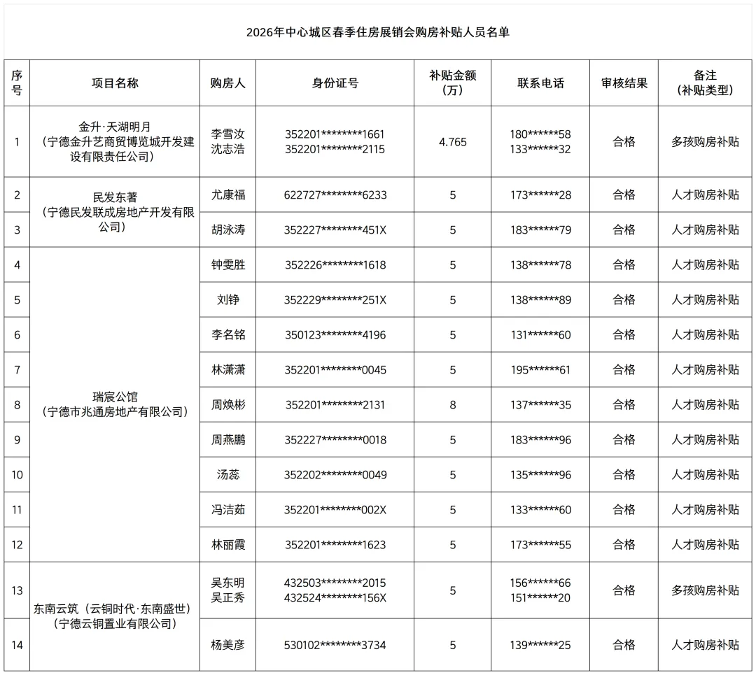 蕉城区2026年春季住房展销会购房补贴人员名单公示