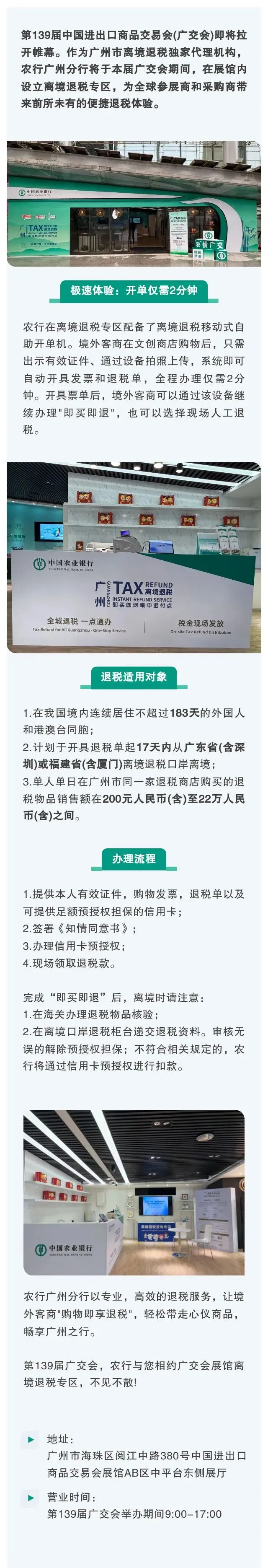 证件一扫,2分钟开单 农行在广交会为您提供便捷离境退税服务