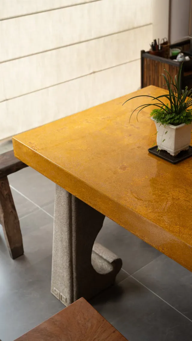 叶脉肌理拓印茶桌