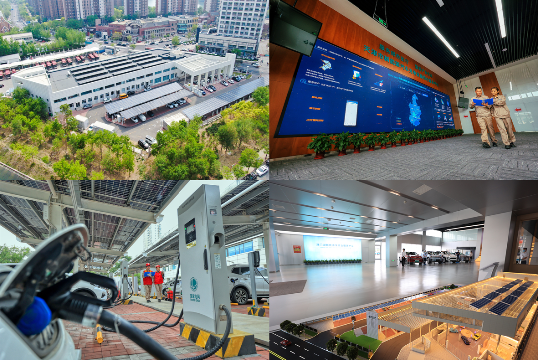 沙盘原型坐落于天津市西青区,这是国内首座“数字化、网联化、生态化”、以服务地方新能源车产业发展为主的津门湖新能源车综合服务中心,也是支撑地方能源和交通领域率先实现“碳达峰、碳中和”的生态运营平台和双创中心。自建成投运以来,津门湖新能源车综合服务中心日充换电量最高达2.43万千瓦时,累计充电量达857.30万千瓦时,服务新能源车充换电34.89万车次,减碳1.1万余吨,保障了市民高效充电、绿色出行。