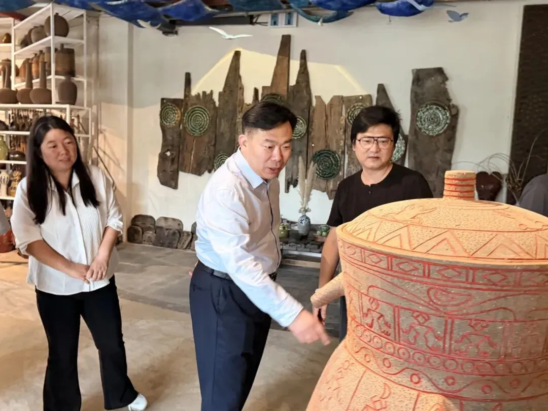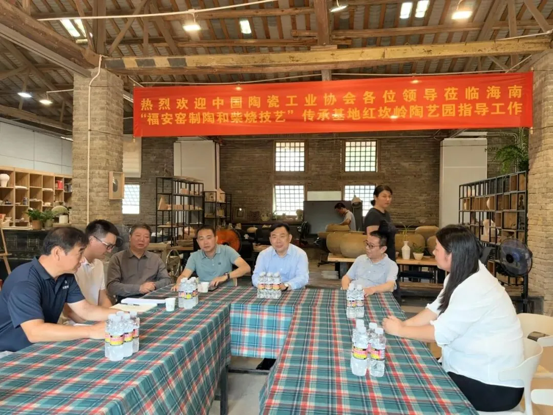 展会期间,刘挺理事长一行赴海南澄迈调研本土陶瓷文化传承与产业发展,先后走访福安陶瓷艺术馆与“福安窑制陶和柴烧技艺”传承基地红坎岭陶艺园。在福安陶瓷艺术馆,详细了解两地陶瓷技艺传承、文化展示与文旅融合情况,对其发展模式给予充分肯定,鼓励打造海南陶瓷文化标杆,以非遗传承助力乡村振兴,让海南本土陶瓷技艺焕发新活力。