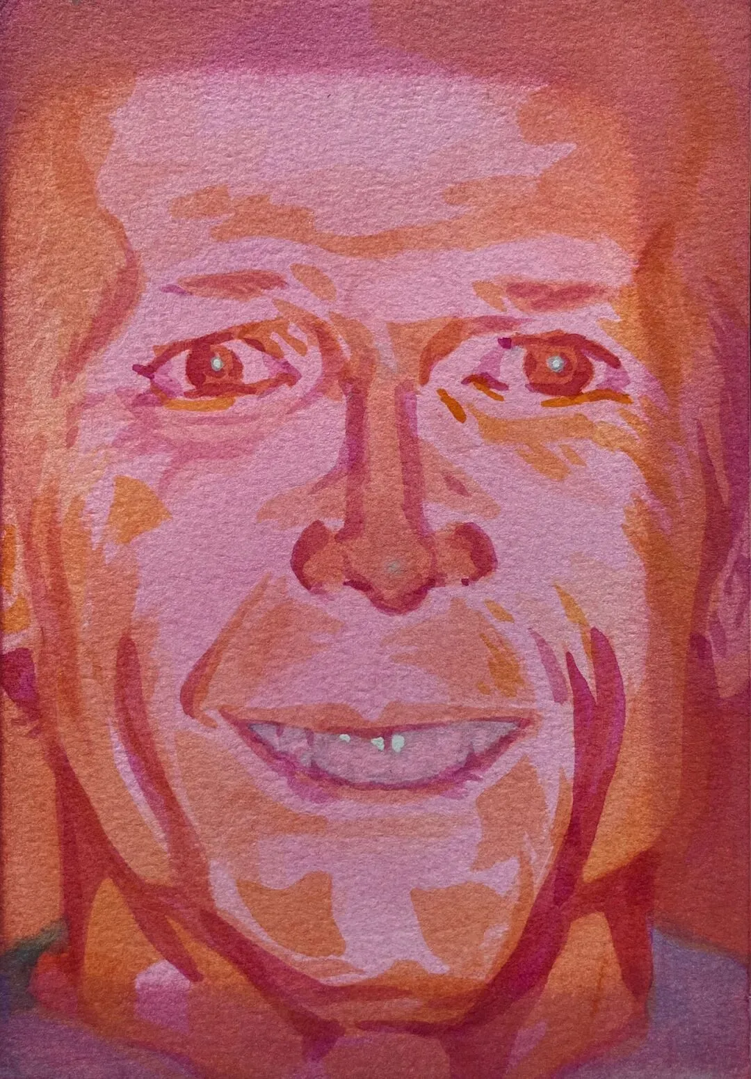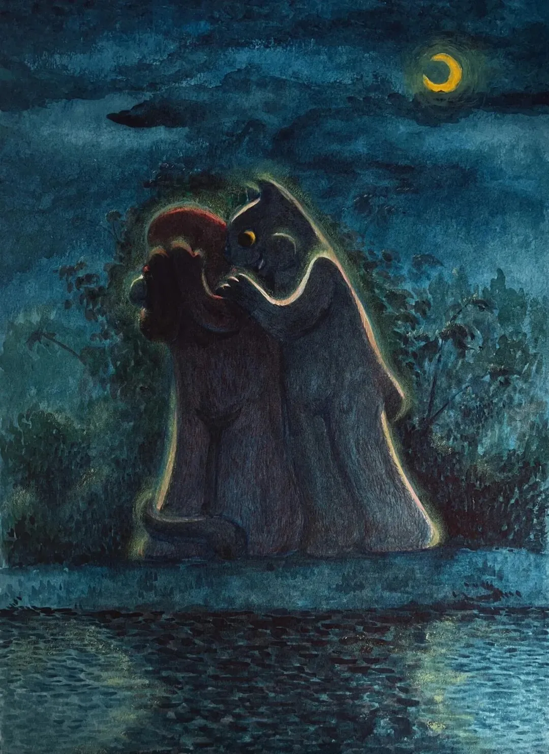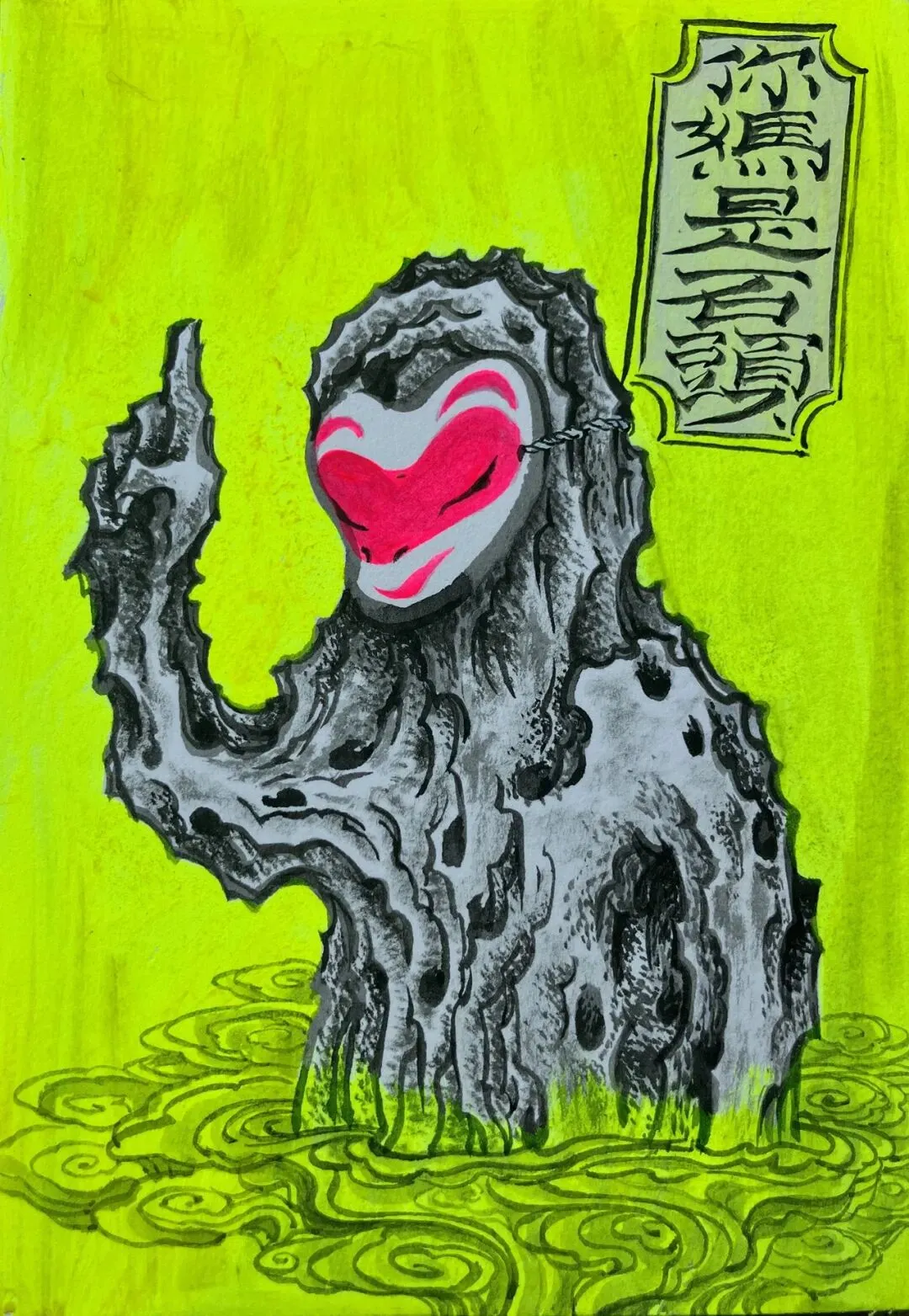 李臼臼会让我想起李北北,成都人是这样叫李伯清的。可是李臼臼不是李北北,李北北只消动嘴,李臼臼要忙的多,他玩图像、塑形,还有轻度迷幻的音乐。总的来说,臼臼是手艺人,看完本次展览,你会承认:他手艺扎实,称得上是一位严肃的视觉工作者。在南京,李臼臼藏于“红龟”——这是他的工作室,既可以远眺紫金山和狮子山的烟云,也能俯瞰热河南路的烟火和爱情,和李北北一样,他不缺市井气。Tiro 铅笔 丙烯 胶水 纸480mm*650mm 2026本次海报取自他一张作品,画中的“yiyi”只露出了一双手,满身覆盖着鳞片,又像是满披铠甲。yiyi系列画作的原型是一个小姑娘,拥有不同的分身,有时候像是犰狳和树懒的合体,有时候像只毛猴子,甚至是毛毛虫,不是捂住了眼,就是戴了面具,yiyi是幼态的、潺湲的、自得的、害羞的,捂住了眼,就捂住了“心灵的窗户”,叫人无法窥探,看不进、觑不见、望不穿、睇唔着。端详 纸面水彩 金属箔 195mm*270mm 2023大桃子 纸面水彩、蛋彩 595mm*520mm 2026你妈是石头 纸面水彩、蛋彩、荧光色浆 180mm*125mm 2025yiyi系列是我自己格外喜欢的。捂上眼睛,就是它主动建立了界限,不被解释,保留自己的内心,还能在你不提防的时候,迅速移开双手看你一眼。有些画面略有诡异气氛,但这恰恰是臼臼的温柔隐身术,他试图把他经验的世界给你看看。