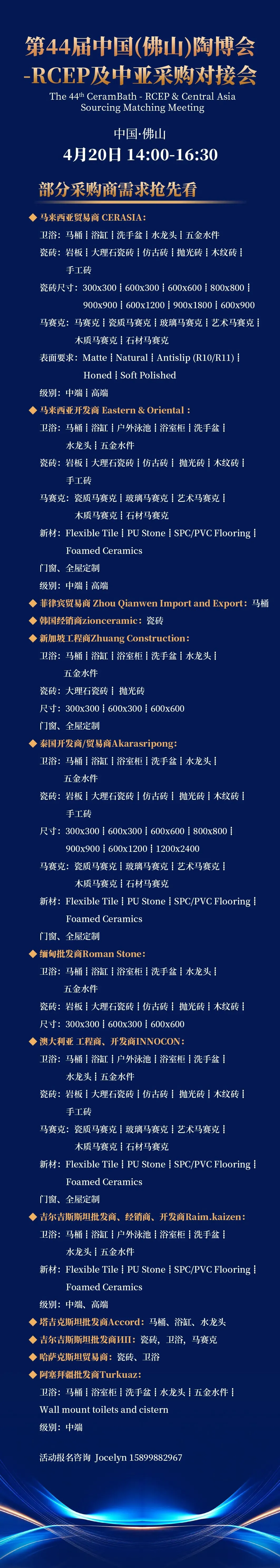 【活动通知】第44届中国(佛山)陶博会-RCEP及中亚采购对接会需求发布!