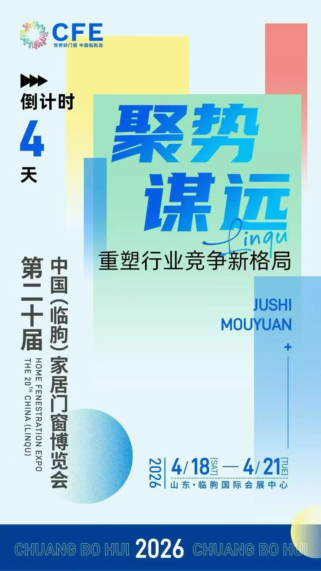 世界好门窗,中国临朐造!2026年4月18日-21日,第二十届中国(临朐)家居门窗博览会将在临朐国际会展中心盛大召开。