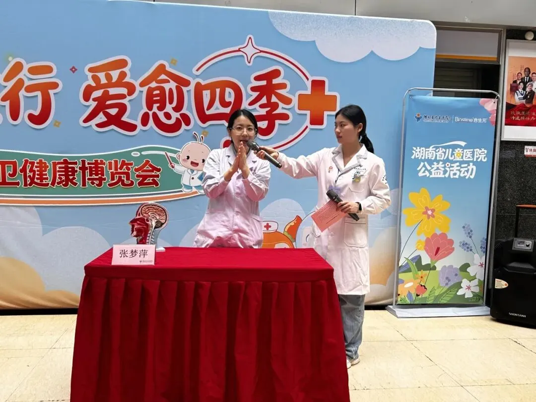 今年4月是第38个全国爱国卫生运动月,4月9日是国际护胃日,4月第二个星期六(11日)是全国爱鼻日。为提升儿童及家庭的健康意识和自我防护能力,湖南省儿童医院联合爱心企业于4月9日在门诊大厅举办了“爱卫健康博览会”。活动以“科普课堂+趣味闯关+动手体验”的沉浸式模式,将七步洗手法、均衡饮食、鼻腔护理等知识化作一道道趣味关卡,让就诊儿童在游戏中习得健康知识,家长在陪伴中收获科学育儿方法,为春日的门诊大厅注入满满暖意与笑声。