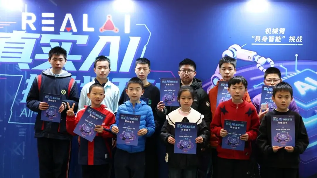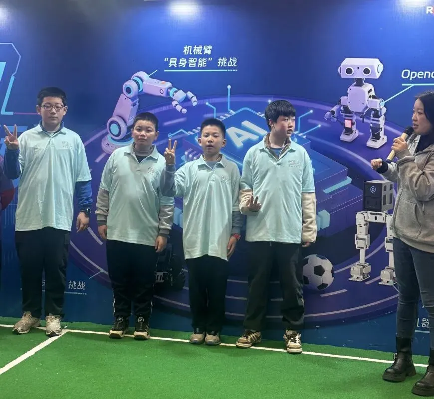 中学组拓辰逸、马润泽、张泽俊同学,在机械臂 “具身智能” 挑战中斩获特等奖。