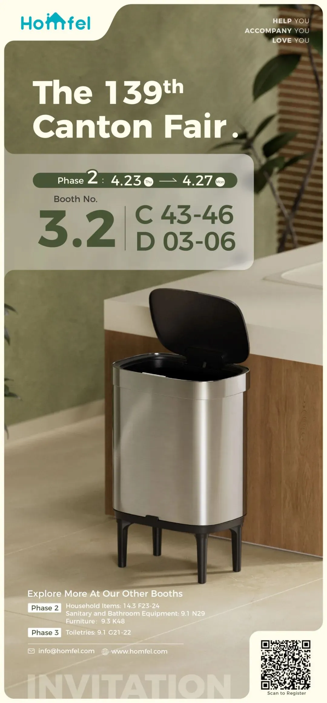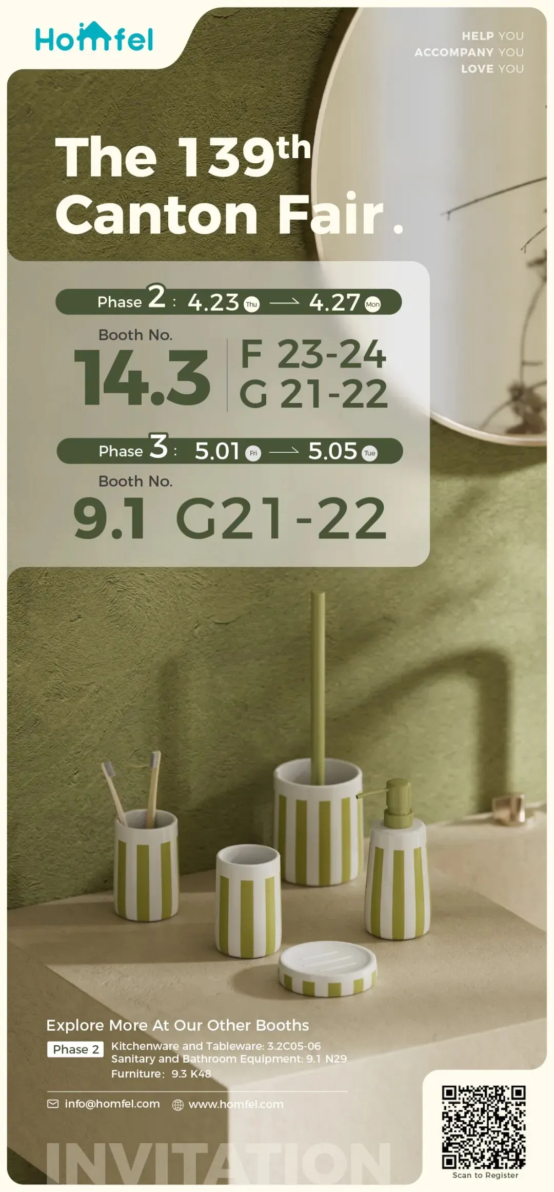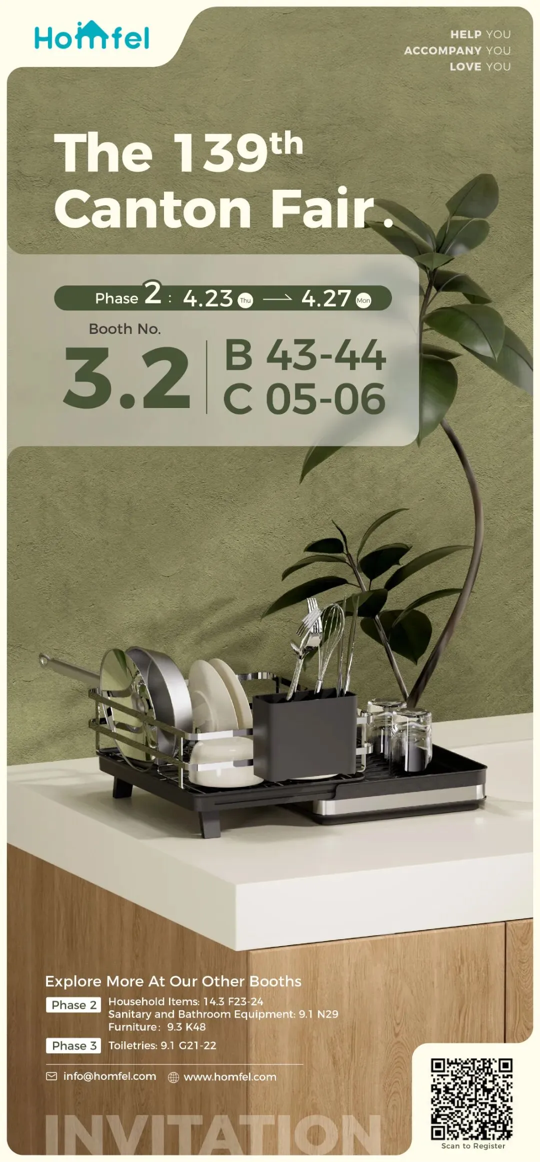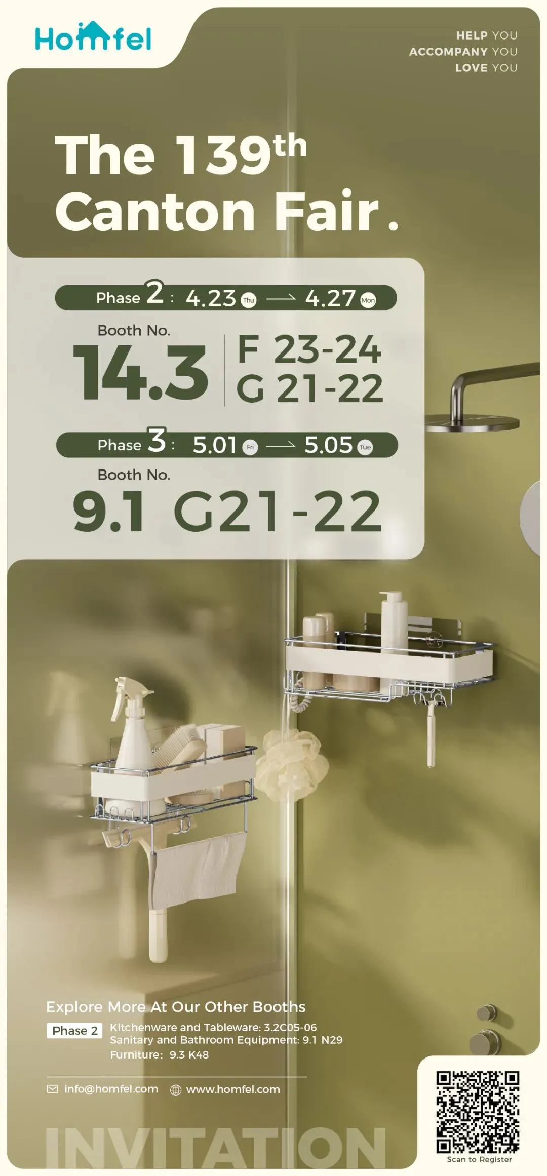 第139届中国进出口商品交易会(广交会)即将在广州盛大启幕,Homfel家馨居将再次参展,亮相第二、第三展期。作为一家集研发、生产、销售于一体的专业工贸企业,Homfel家馨居深耕餐厨用品、家居收纳及卫浴用品领域十余年,拥有现代化生产基地和专业设计团队,可提供OEM/ODM定制服务,产品远销全球60多个国家和地区。