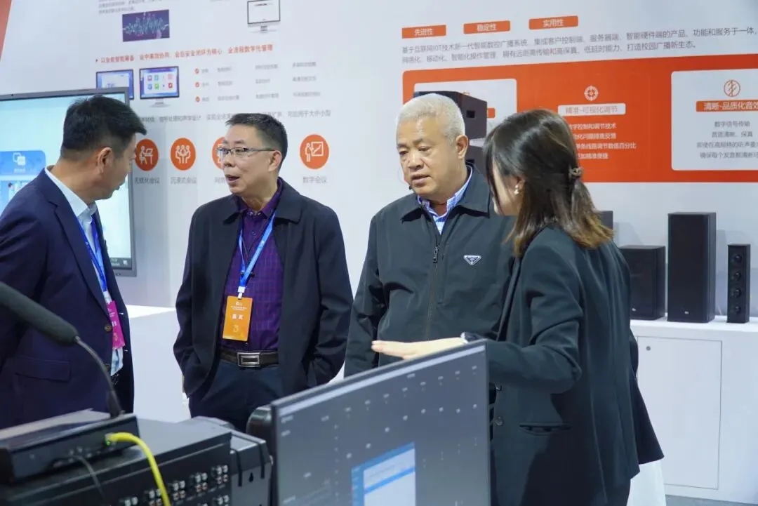 展会期间,多位教育主管部门领导、行业协会专家及高校负责人莅临中协智能展位。他们详细了解了人工智能教学评价系统的实时分析能力、星闪扩声的超低延时表现以及相控阵广播的定向发声技术,并对中协智能在声学赋能教育数字化转型方面的探索给予高度评价。
