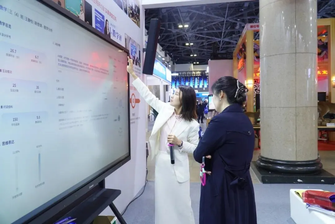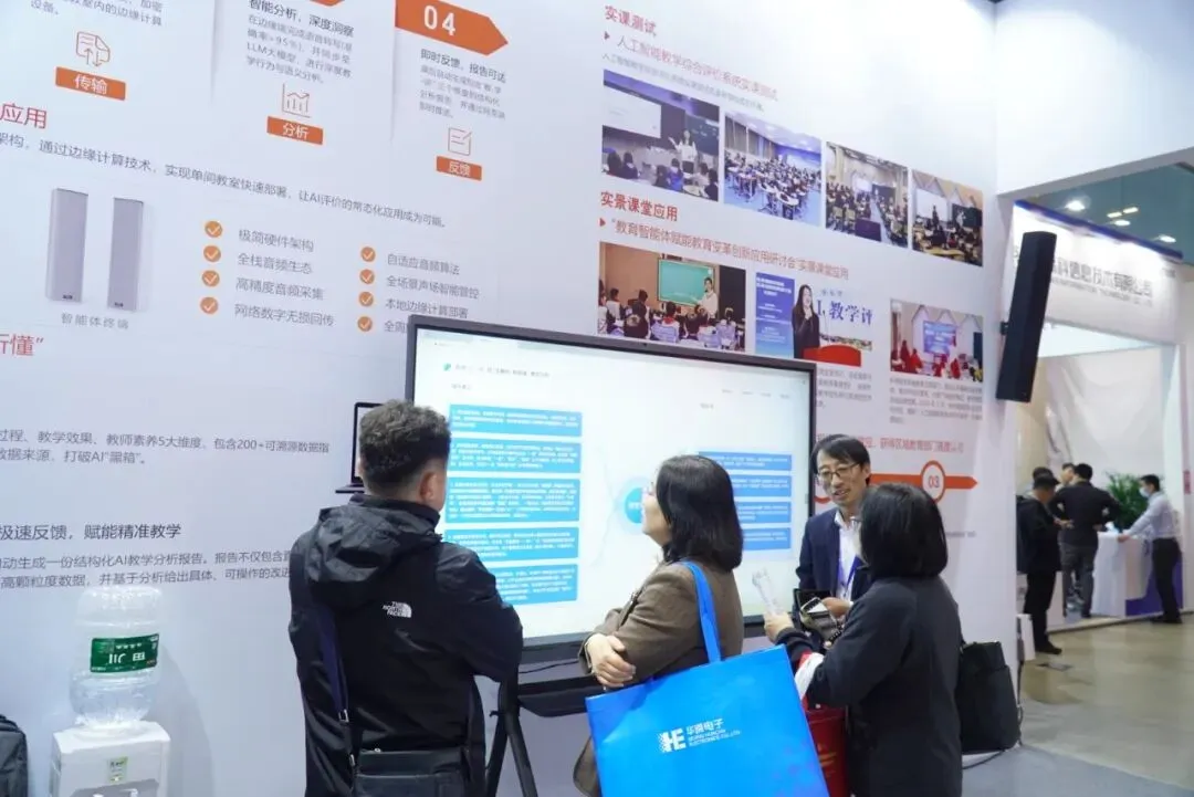 以音频为核心驱动,融合无线采集、边缘计算与LLM大模型,围绕“教-学-评”三大维度,无感采集课堂行为数据,课后自动生成结构化AI报告——包含互动频次、语速节奏、提问启发性评分、知识点停留时长等维度。现场设置的缩小版真实体验区成为展位“排队王”,嘉宾争相走上讲台即兴授课,大屏显示分析结果。