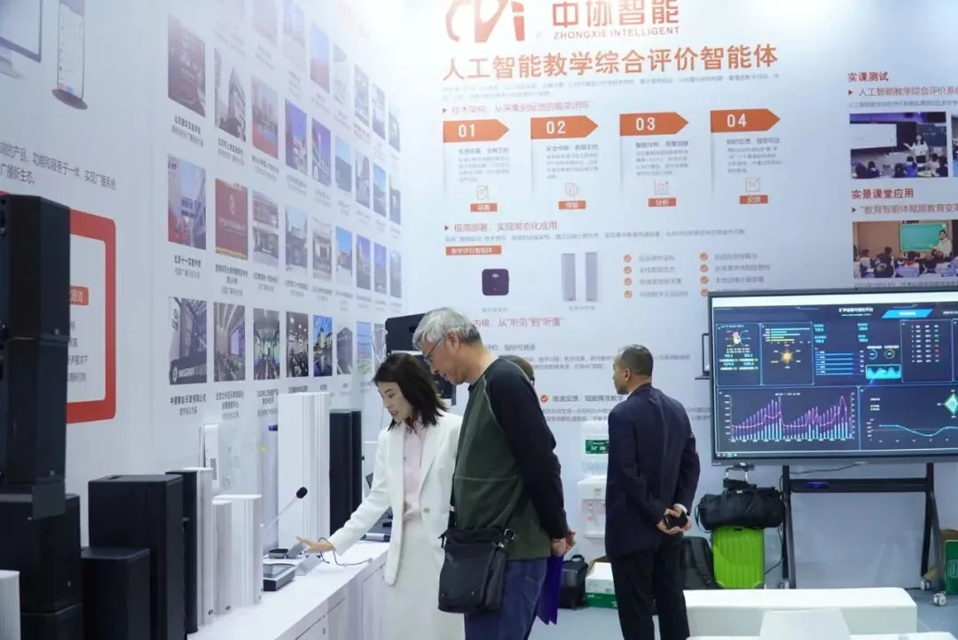 本次展会,中协智能打造了缩小版教学评级系统体验区、星闪无线体验区、相控阵广播互动区等多个沉浸式场景,让嘉宾上手操作、亲耳聆听。