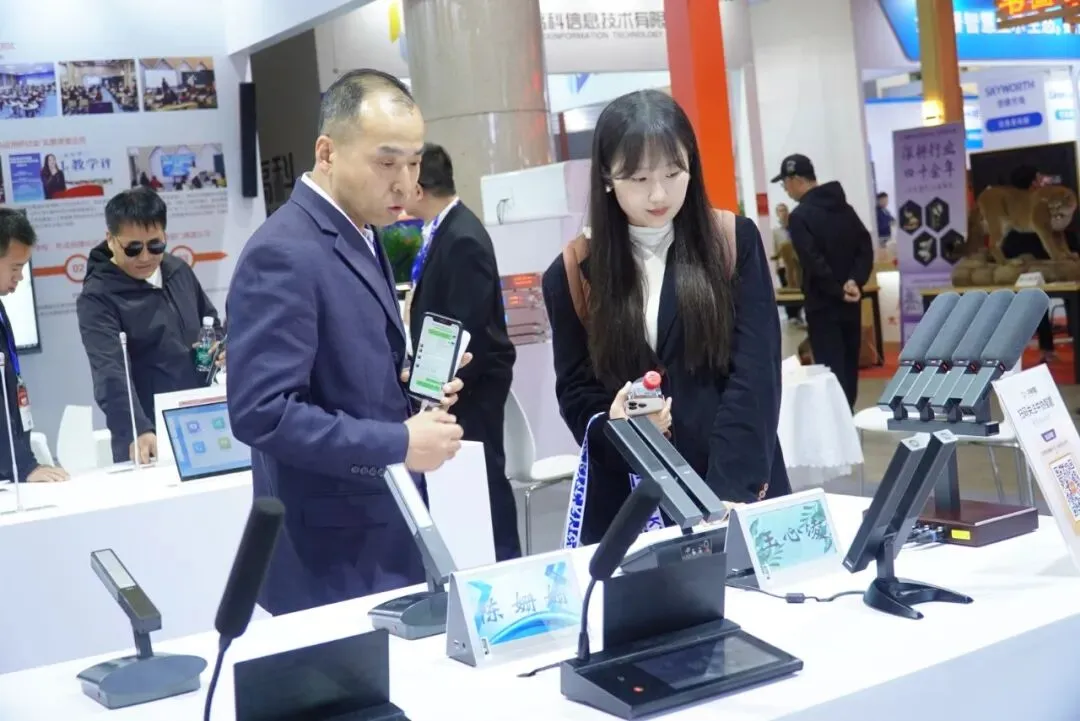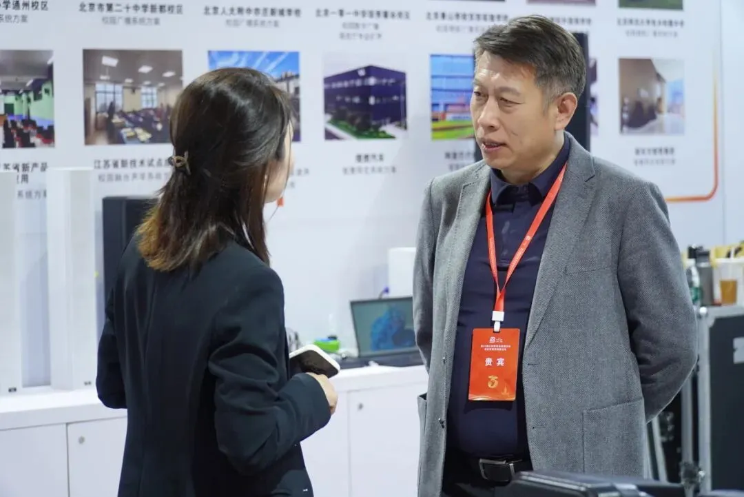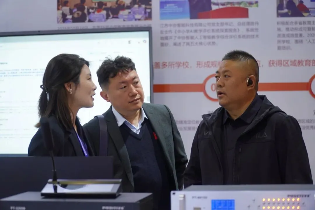 展会期间,北京外国语大学的王老师来到中协智能展位,从会议系统区域走到人工智能教学综合评价系统展区,停留了较长时间。他仔细观看了教学扩声设备的展示,对中协智能在音视频领域的硬件能力表示认可;试听了扩声效果后,认为人声还原度比较高,符合高教场景的使用需求;在体验人工智能教学综合评价系统时,他觉得这套系统在实际课堂中有实用价值,希望后续能推进合作。