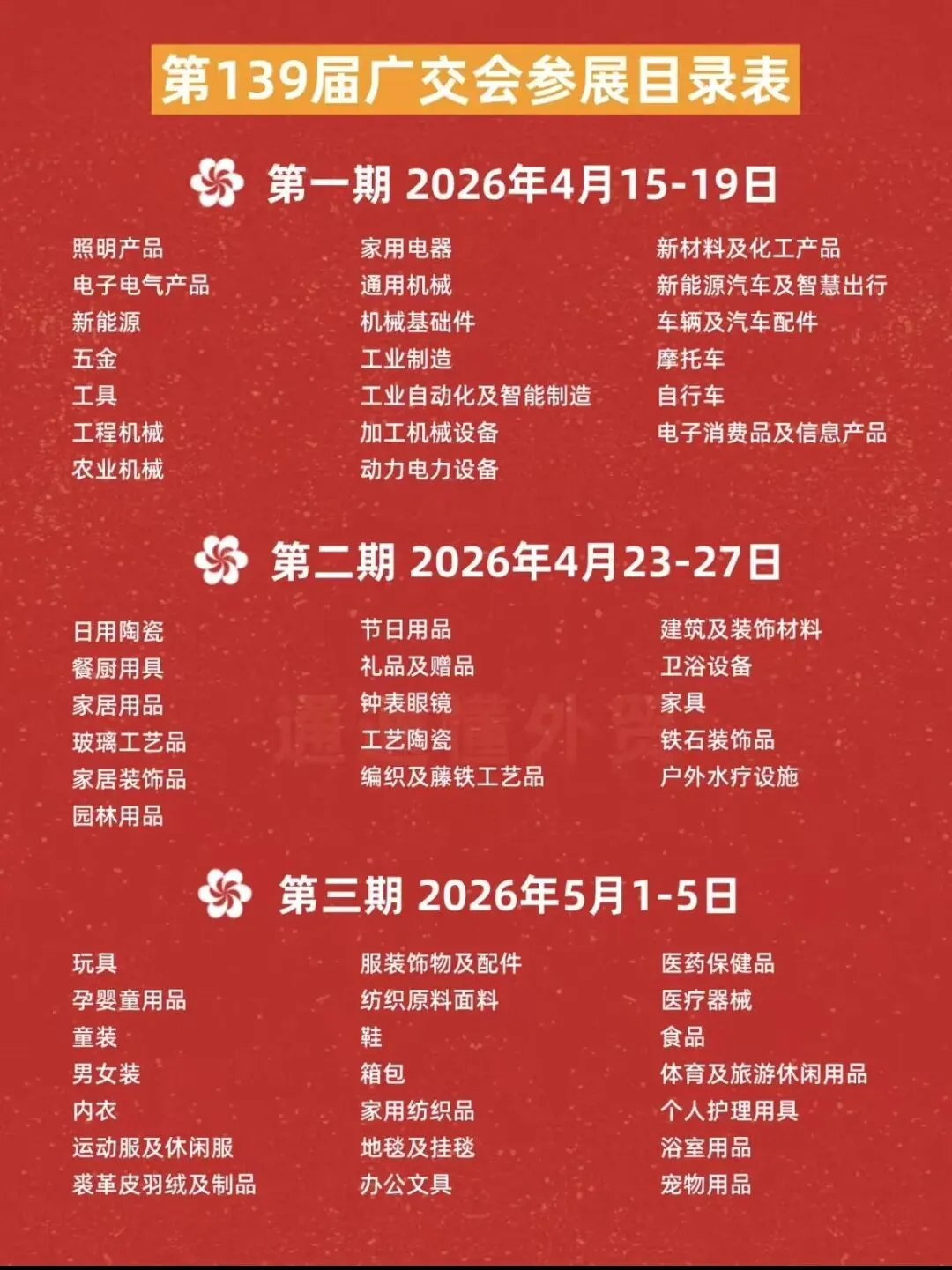 第139届中国进出口商品交易会(广交会)将于2026年4月15日至5月5日分三期在广州举办。